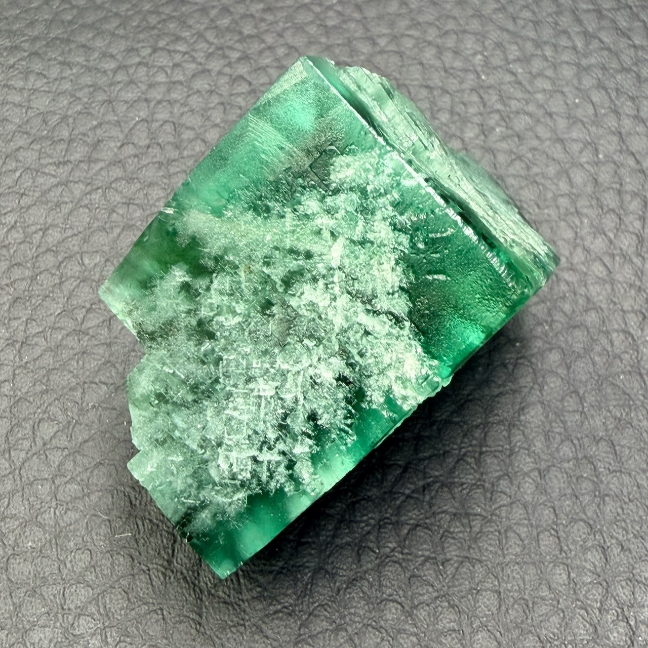 Sur le plan minéralogique, la fluorite se distingue par sa structure cristalline cubique, qui se manifeste souvent sous forme de cristaux bien formés, parfois octaédriques ou cubo-octaédriques.