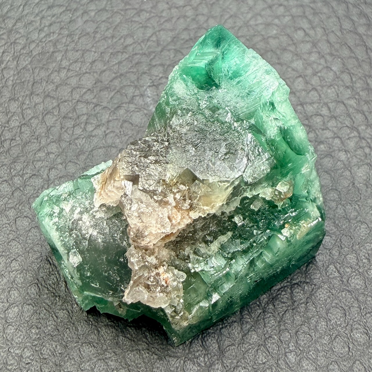 Dans les gisements de fluorite, il est courant de trouver d’autres minéraux associés, dont l’un des plus fréquents est la calcite. La calcite et la fluorite peuvent coexister dans les mêmes environnements géologiques, souvent formant des agrégats et des cristaux intercalés ou en association étroite.