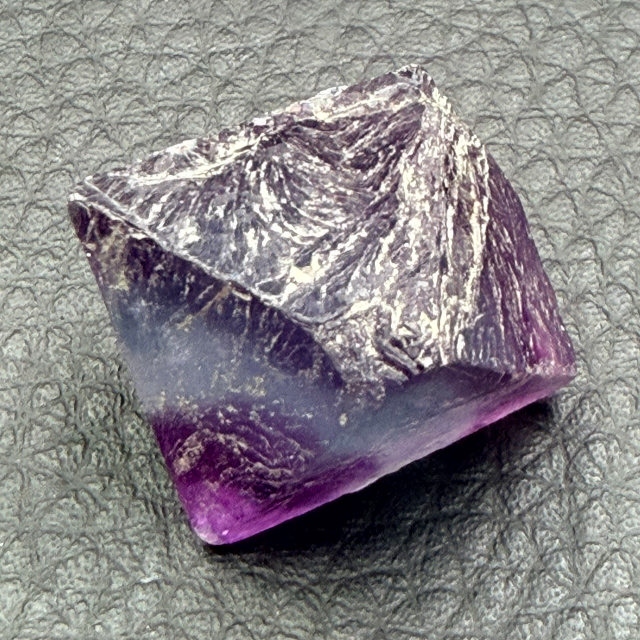La fluorite octaèdre (ou fluorine) est une espèce minérale composée de fluorure de calcium, et de composés organiques. Les différents ions en traces sont à l’origine des multiples couleurs et zonations colorées rencontrées pour ce minéral.
