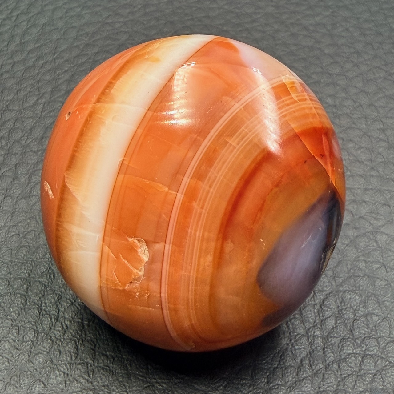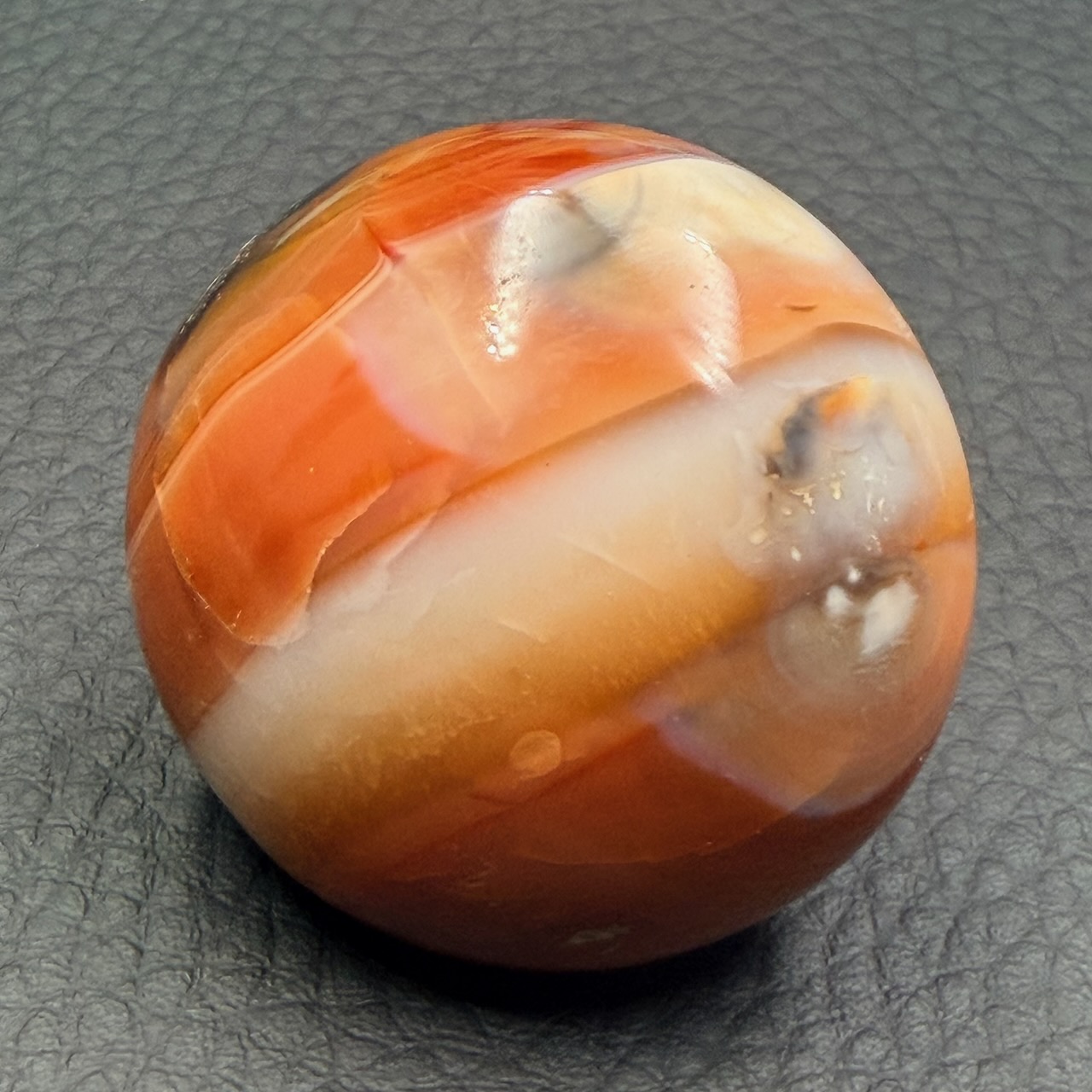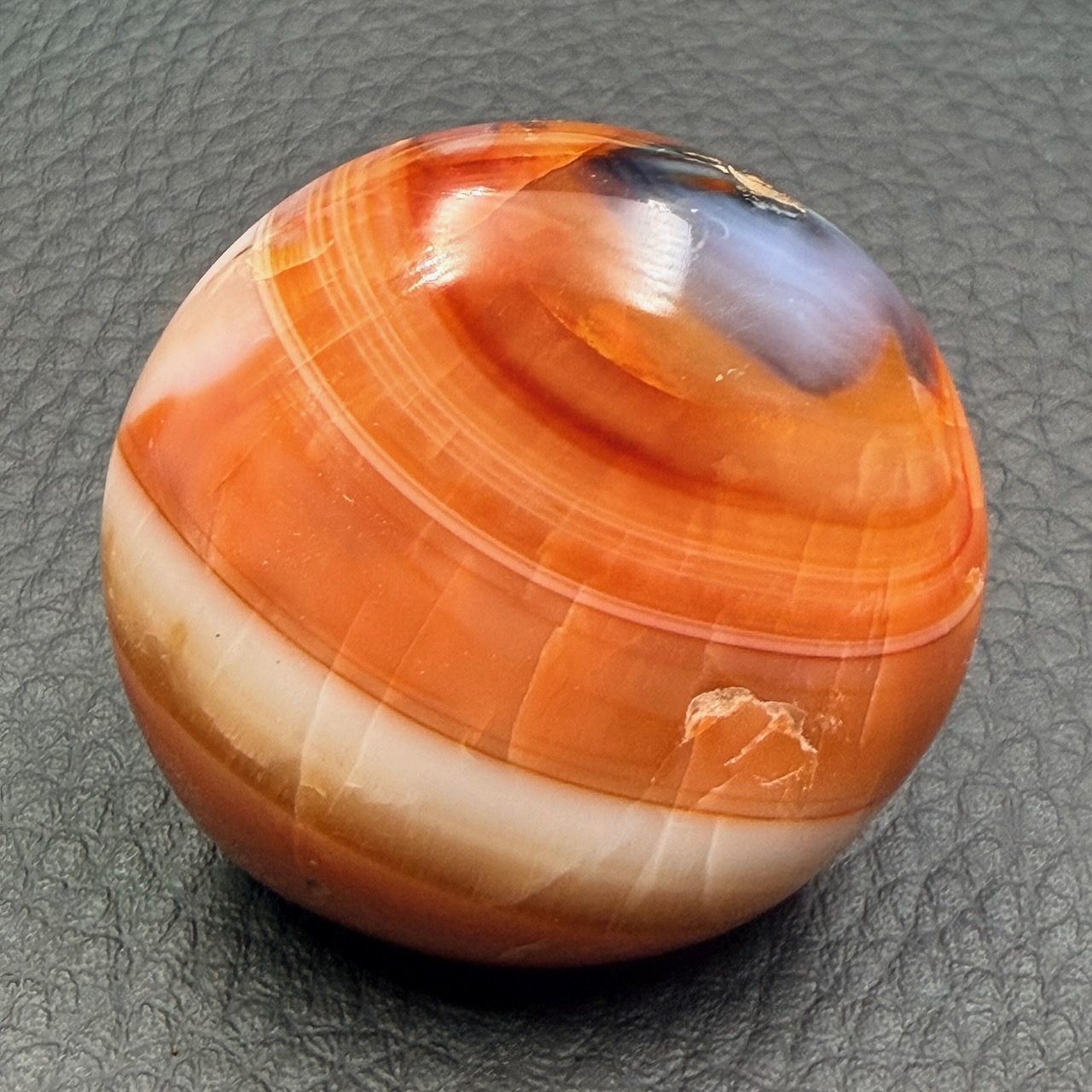 Taille du galet de cornaline 3,8 cm sur 3,8 cm sur 2,5 cm.