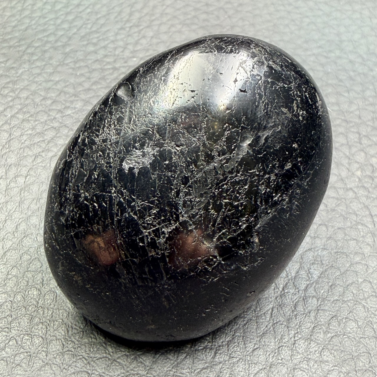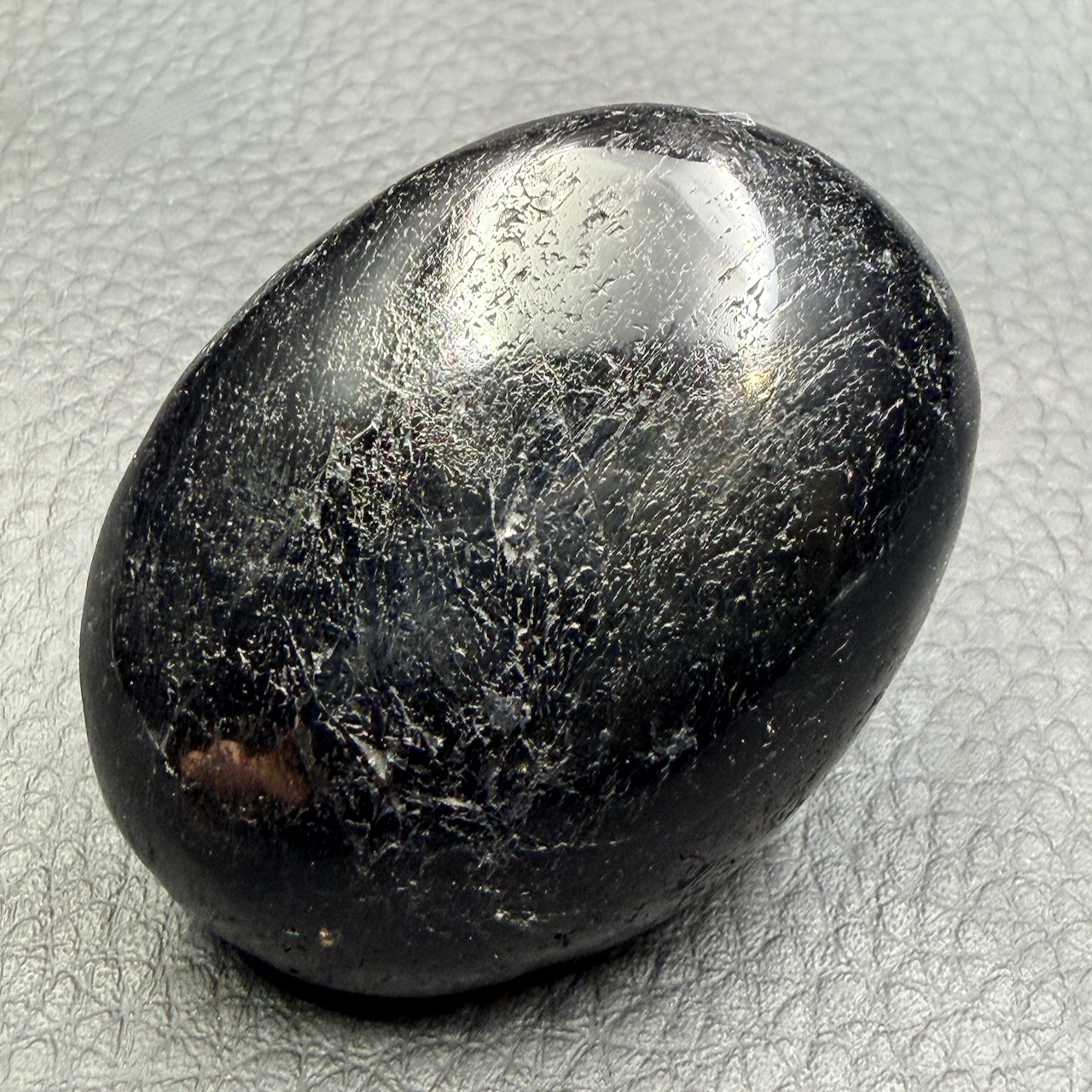 Taille du Galet de Tourmaline Noire 4,9 cm sur 3,7 cm sur 2,2 cm.