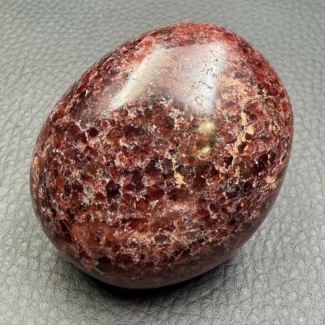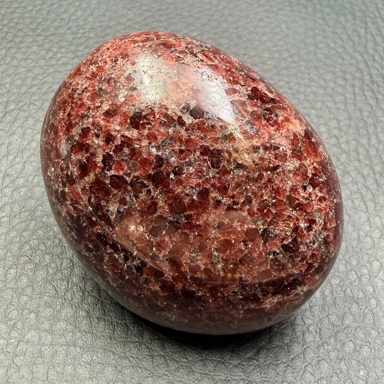 Lorsqu’il est poli et façonné en galet, le grenat révèle toute sa splendeur, créant ainsi un objet à la fois artistique et énergétique.