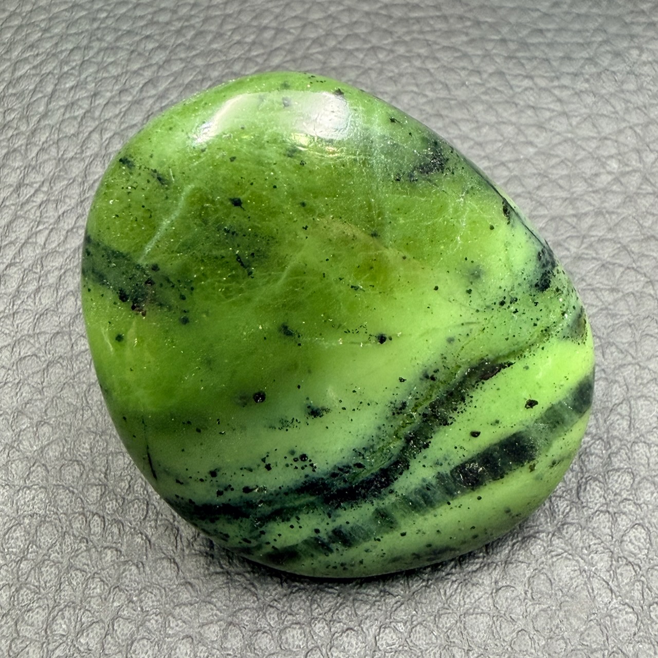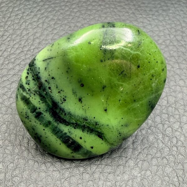 Le galet en jade, utilisé en lithothérapie, est réputé pour favoriser l’harmonie intérieure et apporter une sensation de calme profond.