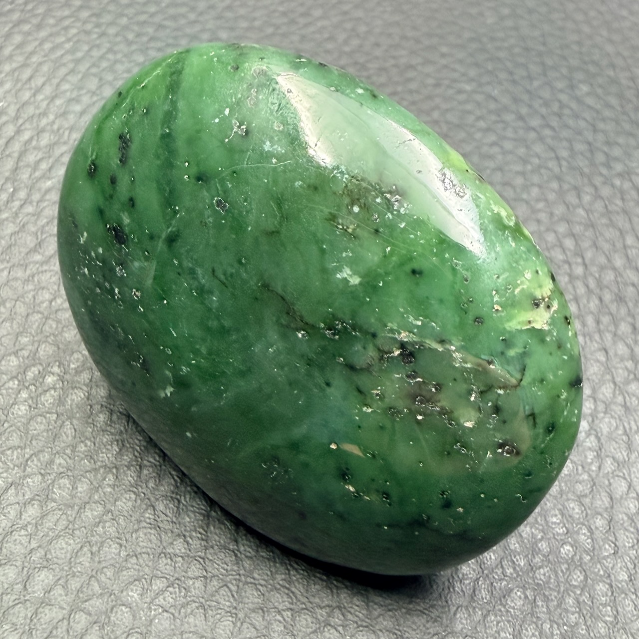 Taille du galet en jade 5,6 cm sur 4,4 cm sur 2 cm.