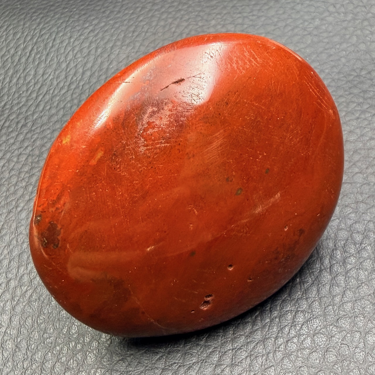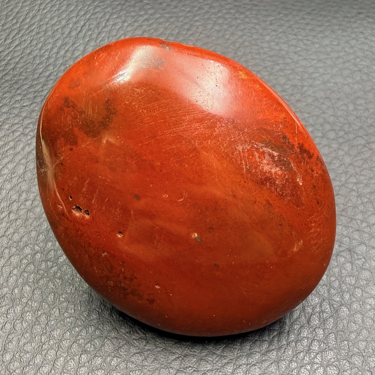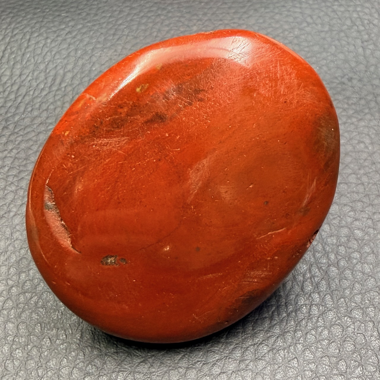 Le galet en jaspe sanguin est souvent choisi pour sa prise en main agréable. Sa surface lisse et sa forme ergonomique en font un objet facile à manipuler, que ce soit dans un cadre de collection ou d’observation.