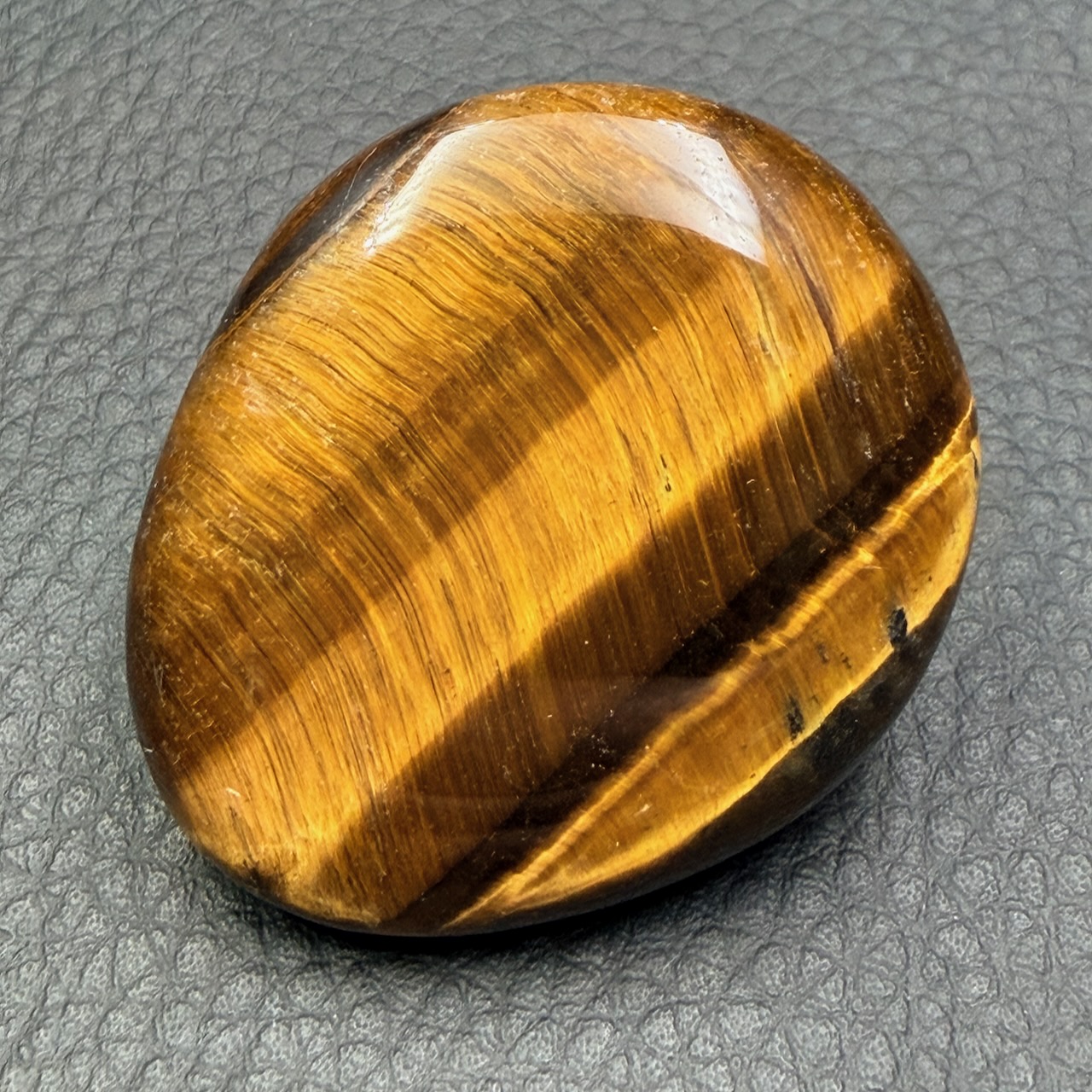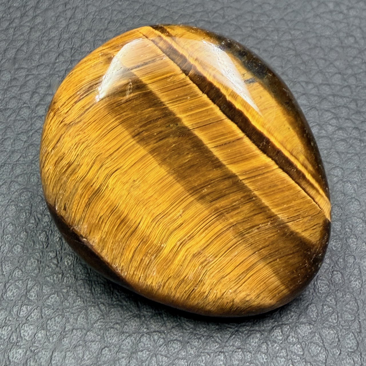 Dimensions du Galet en Oeil de Tigre 4,7 cm sur 4 cm sur 1,1 cm.