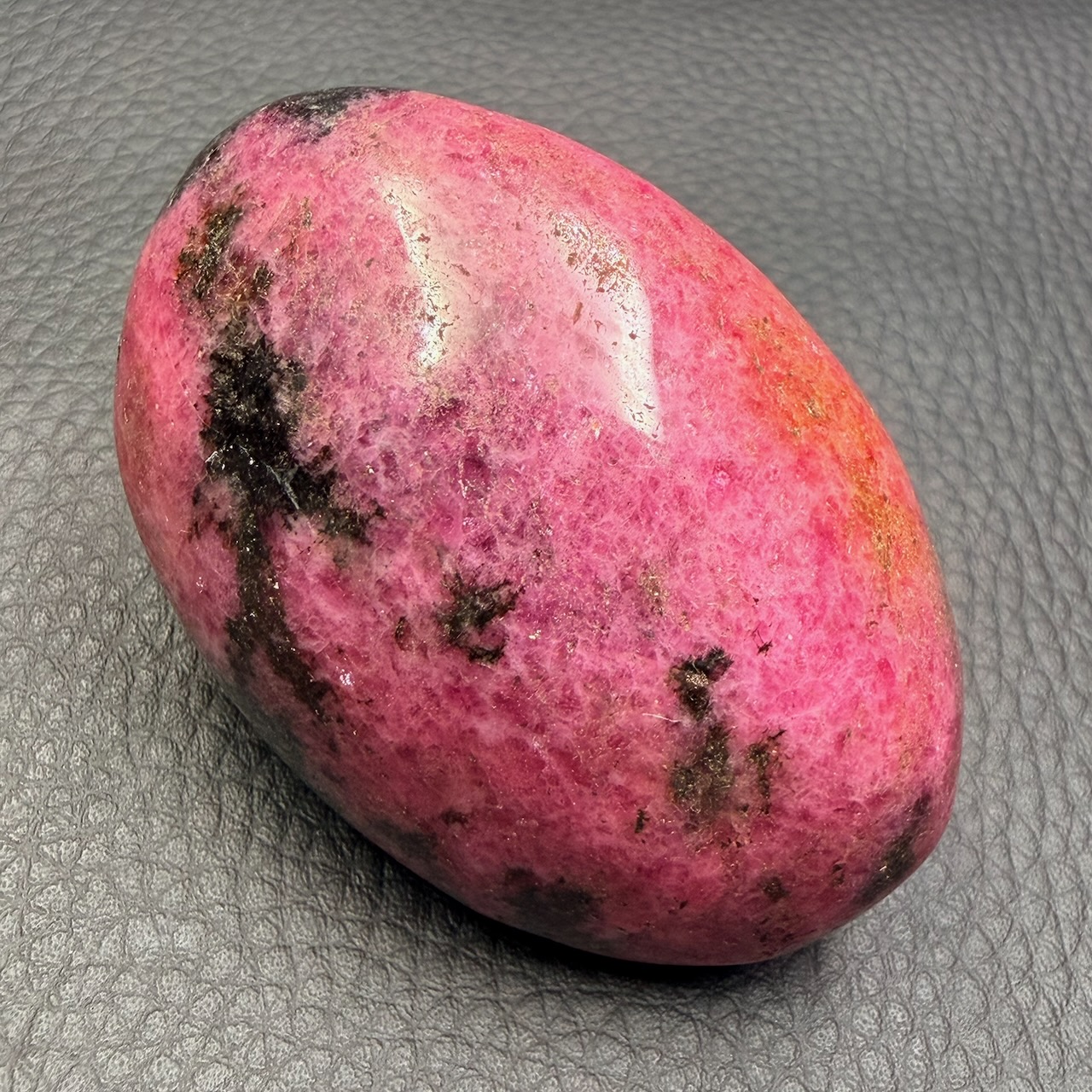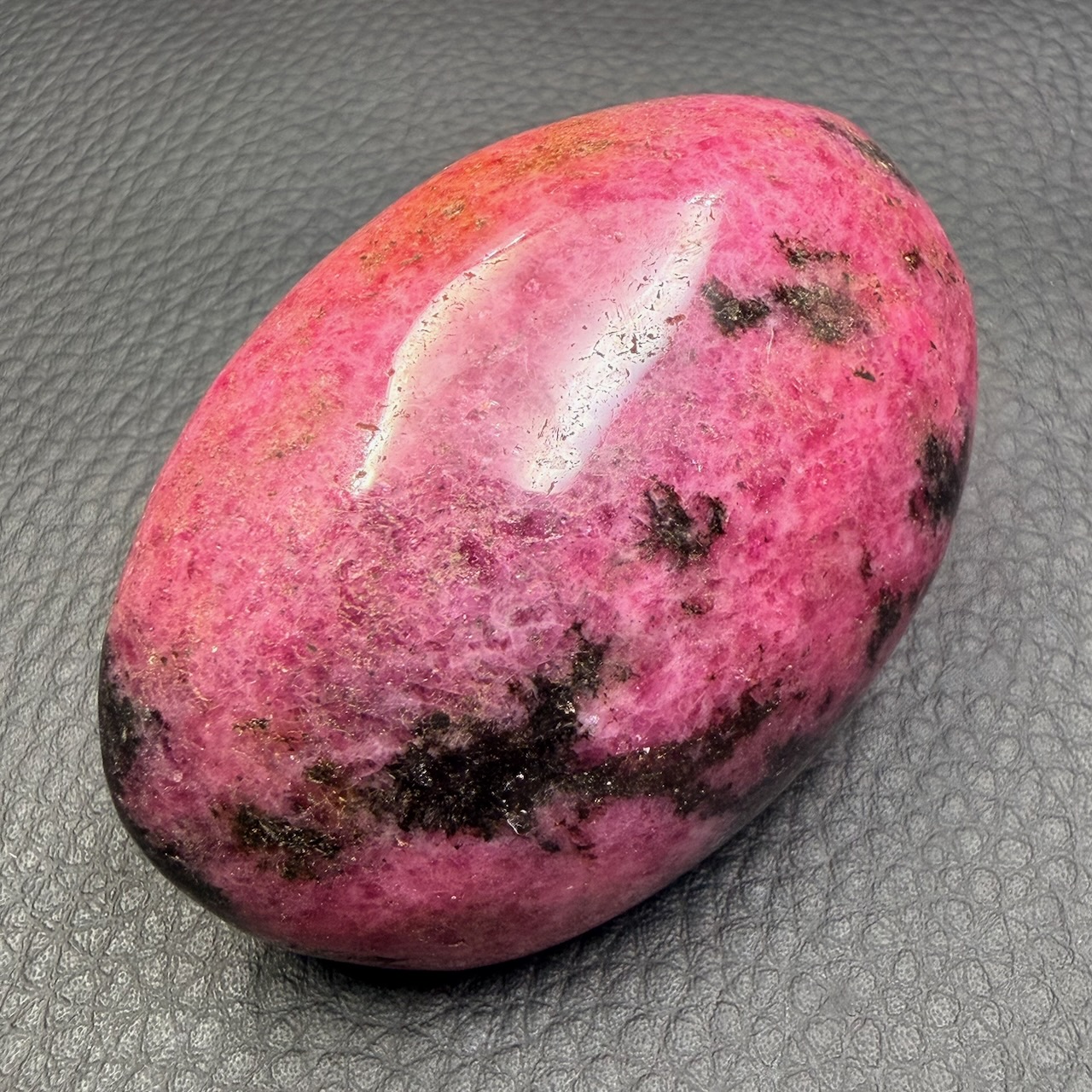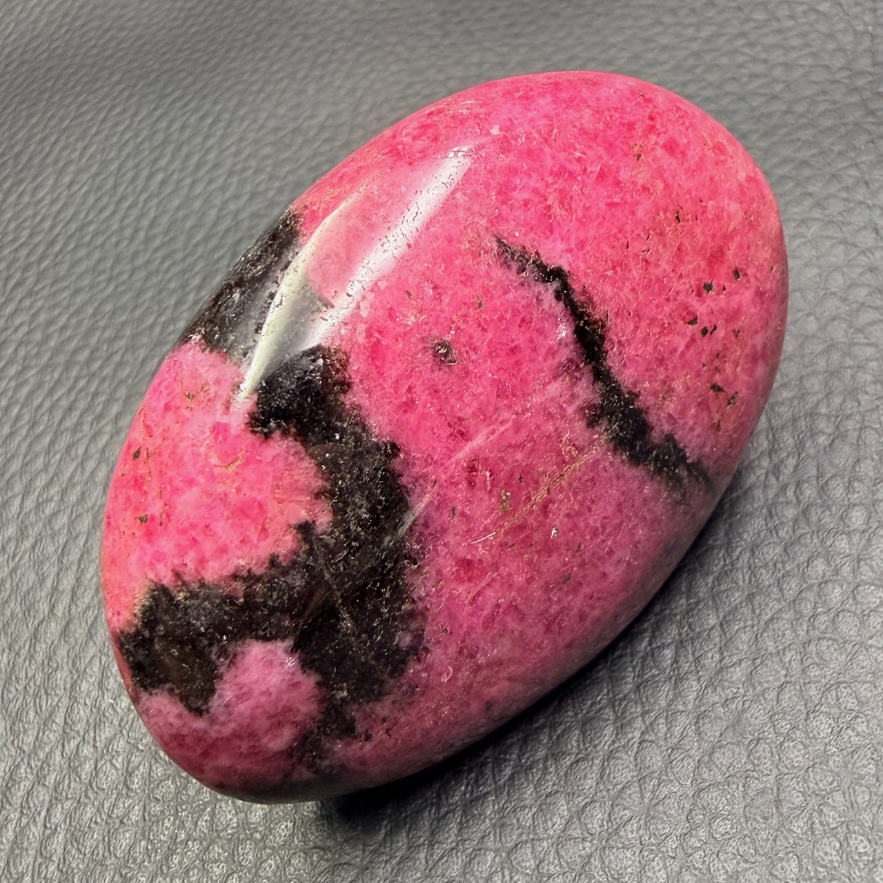 Taille du Galet en Rhodonite 6,5 cm sur 4,5 sur 2,8 cm.