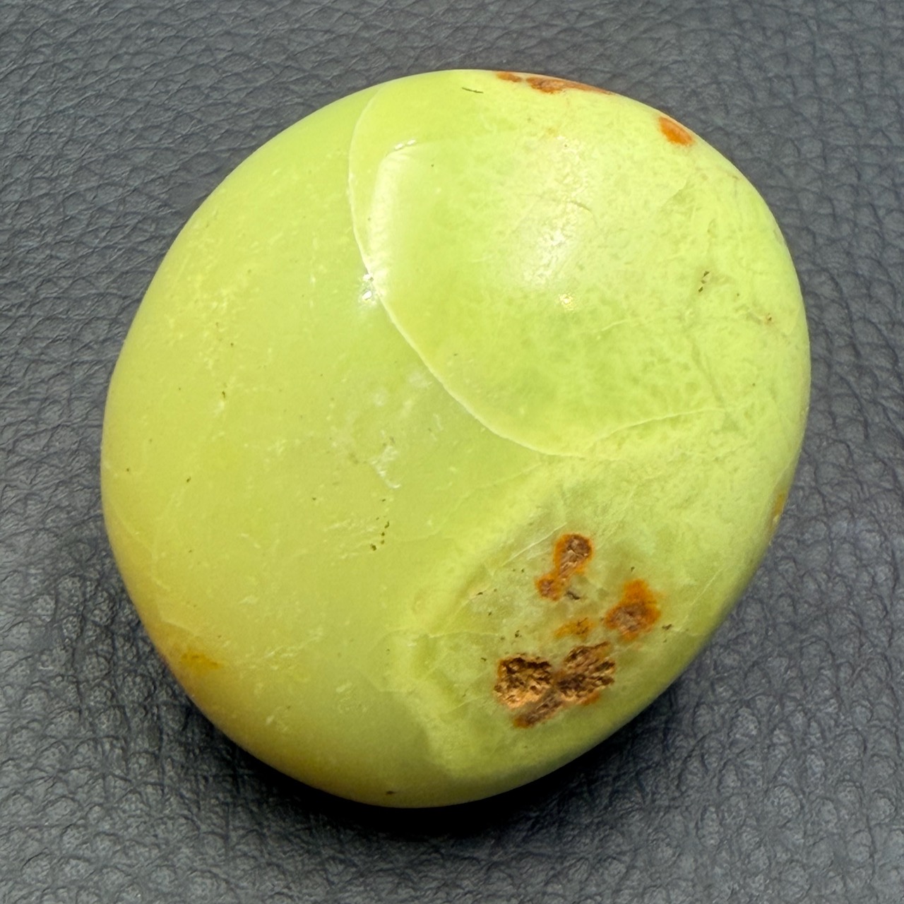 Dimensions du Galet Opale Verte 5,4 cm sur 4,7 cm sur 3 cm.