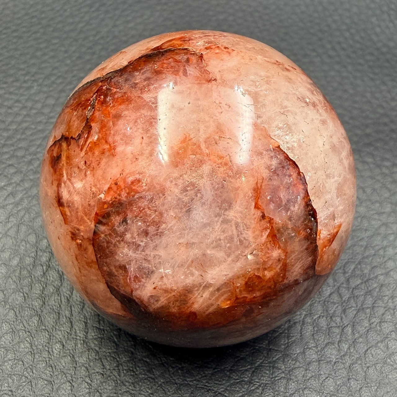 Diamètre de la sphère en Quartz Hématoïde 5 cm.