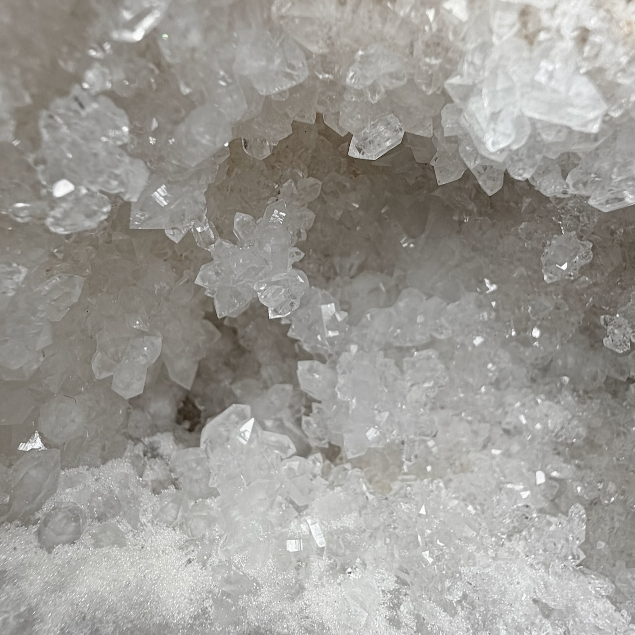 La géode de cristal de roche est la pierre de Lumière, elle illumine nos pensées et permet de se retrouver, le Cristal De Roche accroît les propriétés cristallines de notre corps dont il stimule le flux des énergies.
