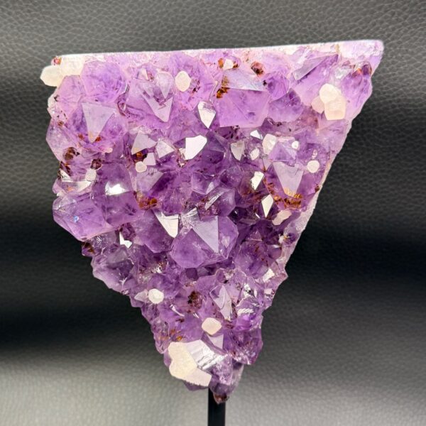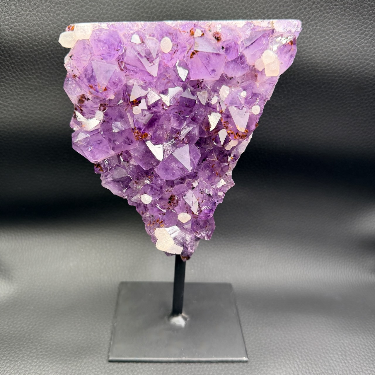 La géode d’améthyste « Super Seven » est réputée pour favoriser la croissance spirituelle, l’élévation de la conscience et l’ouverture des chakras supérieurs. Elle aide à établir une connexion profonde avec des dimensions spirituelles plus élevées.