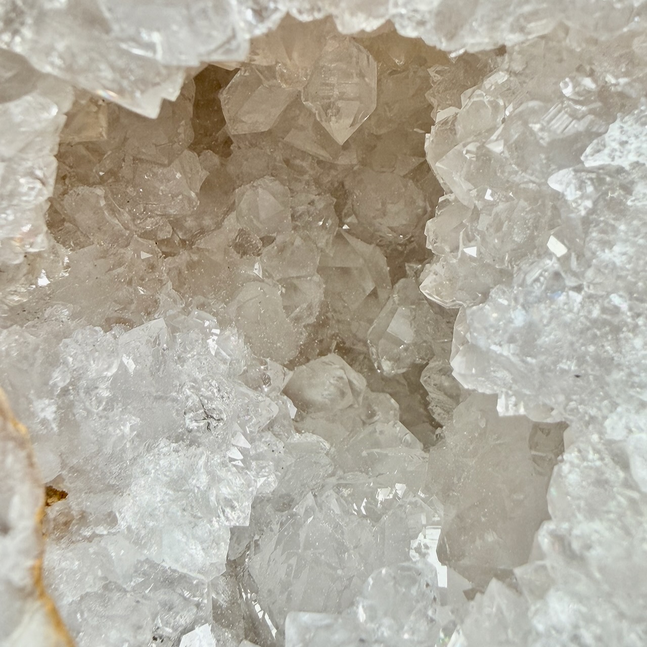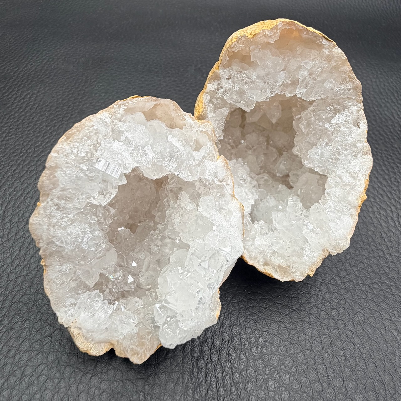 Les géodes de cristal de roche du Maroc sont particulièrement prisées en lithothérapie pour leurs propriétés énergétiques et leur beauté. Une géode est une cavité rocheuse tapissée de cristaux qui se forment à l’intérieur. Les géodes marocaines sont souvent remplies de cristaux de roche clairs et bien formés, créant des structures esthétiquement impressionnantes.