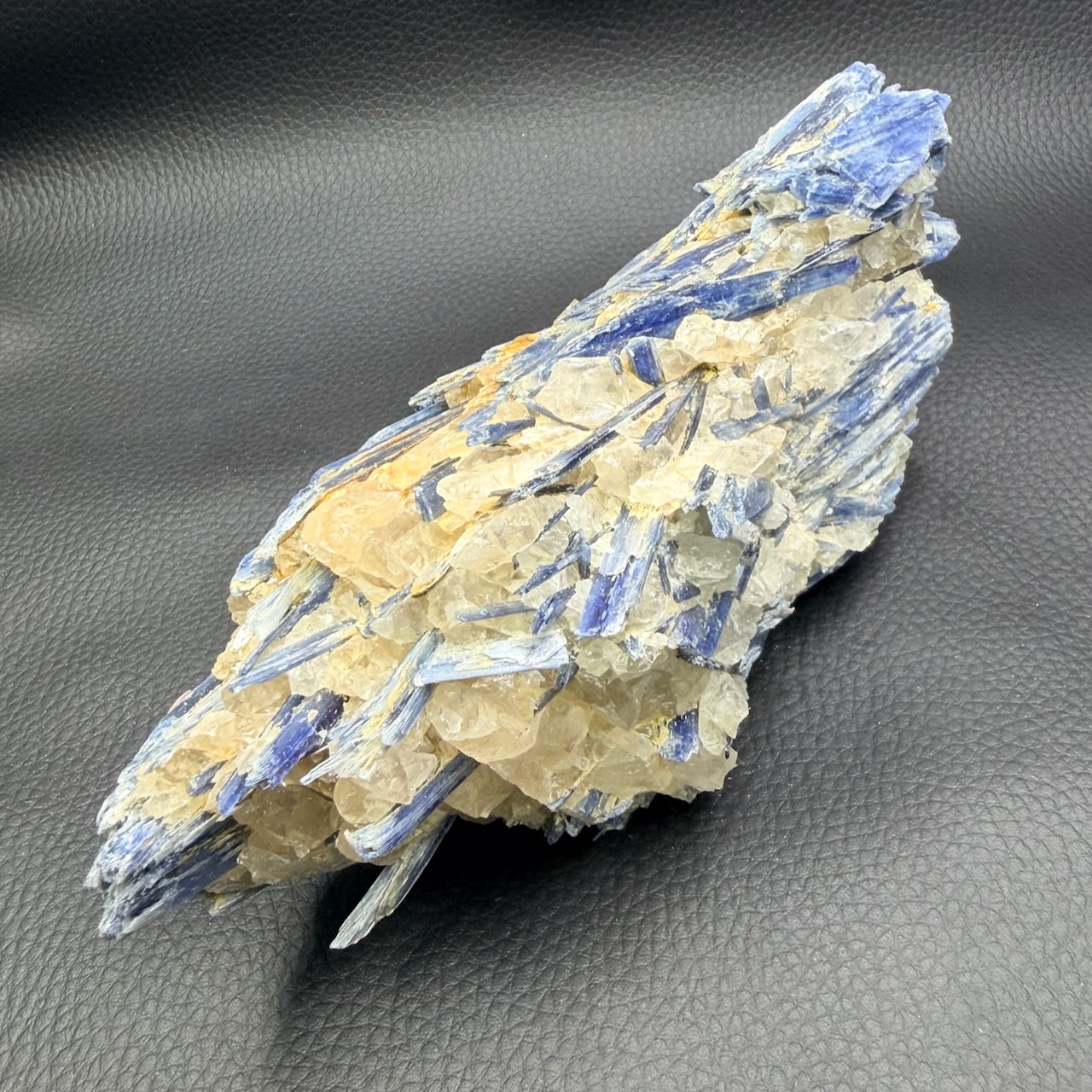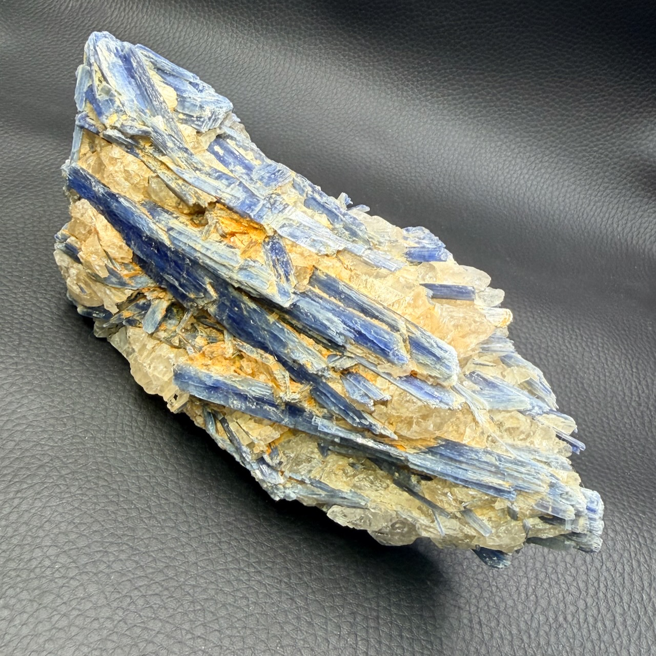 La kyanite bleue extraite au Brésil est appréciée pour la taille de ses cristaux et la stabilité de sa couleur. Les gisements du Minas Gerais produisent des spécimens présentant une teinte bleue soutenue, parfois légèrement nuancée de gris ou de vert.