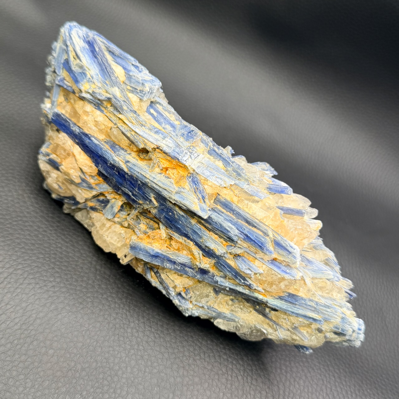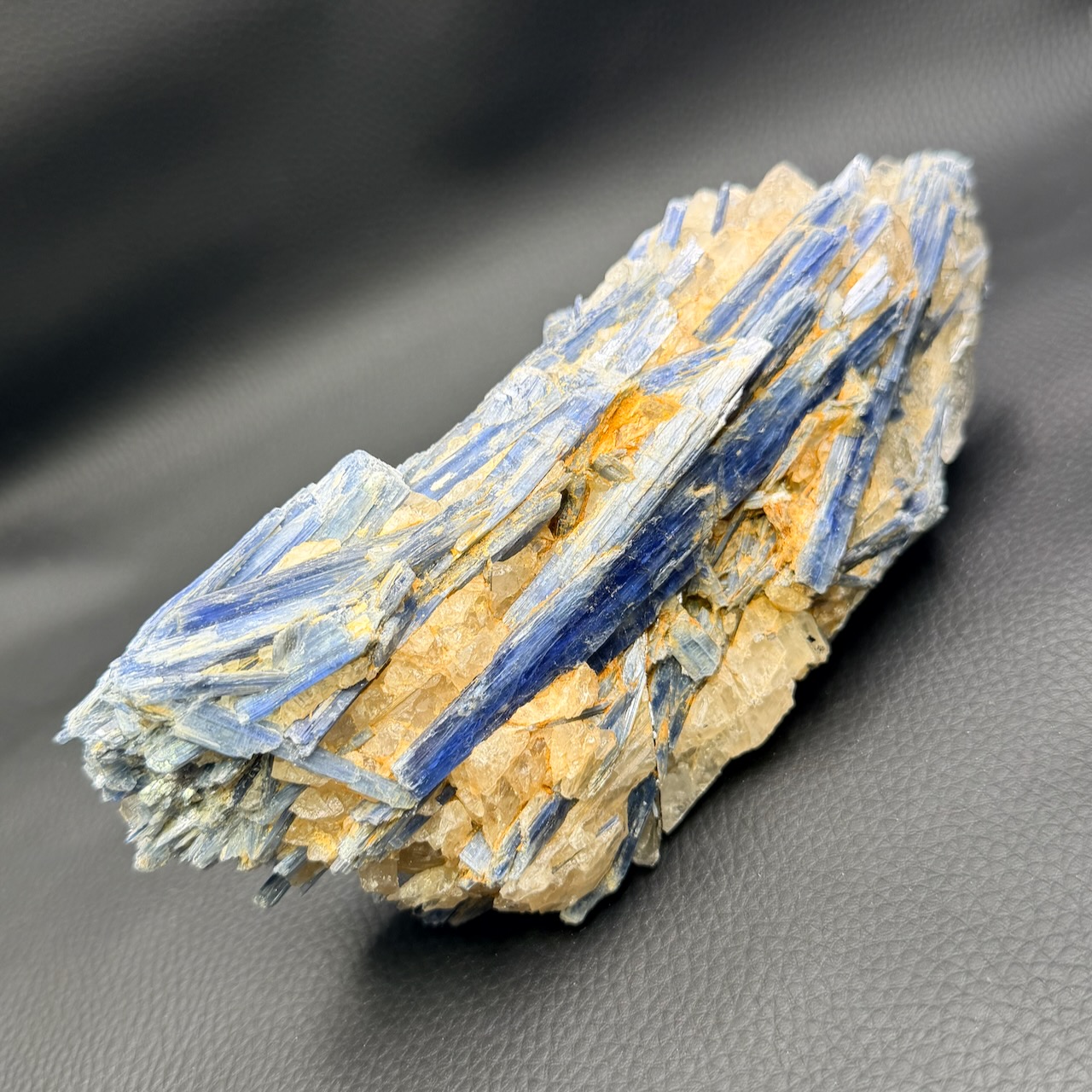 La kyanite bleue brute est un silicate d’aluminium (Al₂SiO₅), appartenant à la même famille minéralogique que l’andalousite et la sillimanite.