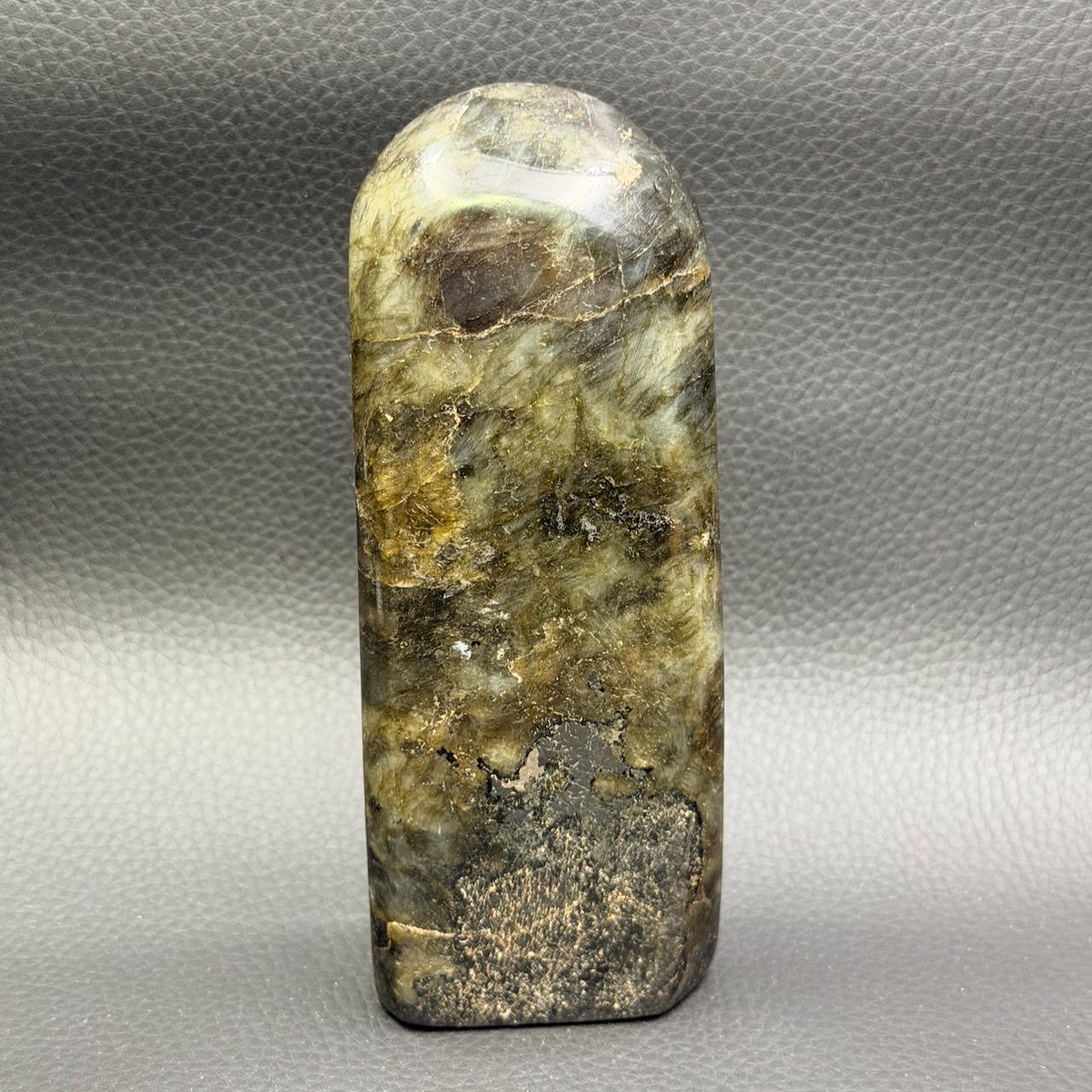 La particularité de certaines pièces de labradorite est de posséder un jeu de couleurs à l’éclat métallique.