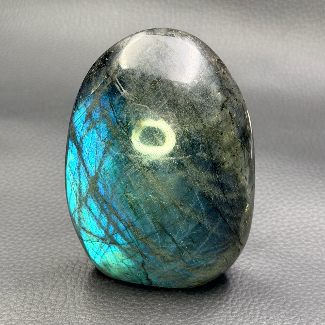 Visualisez la labradorite baignée dans une lumière bleue, portant avec elle l’énergie de votre intention. Imaginez cette énergie fusionner avec la pierre.