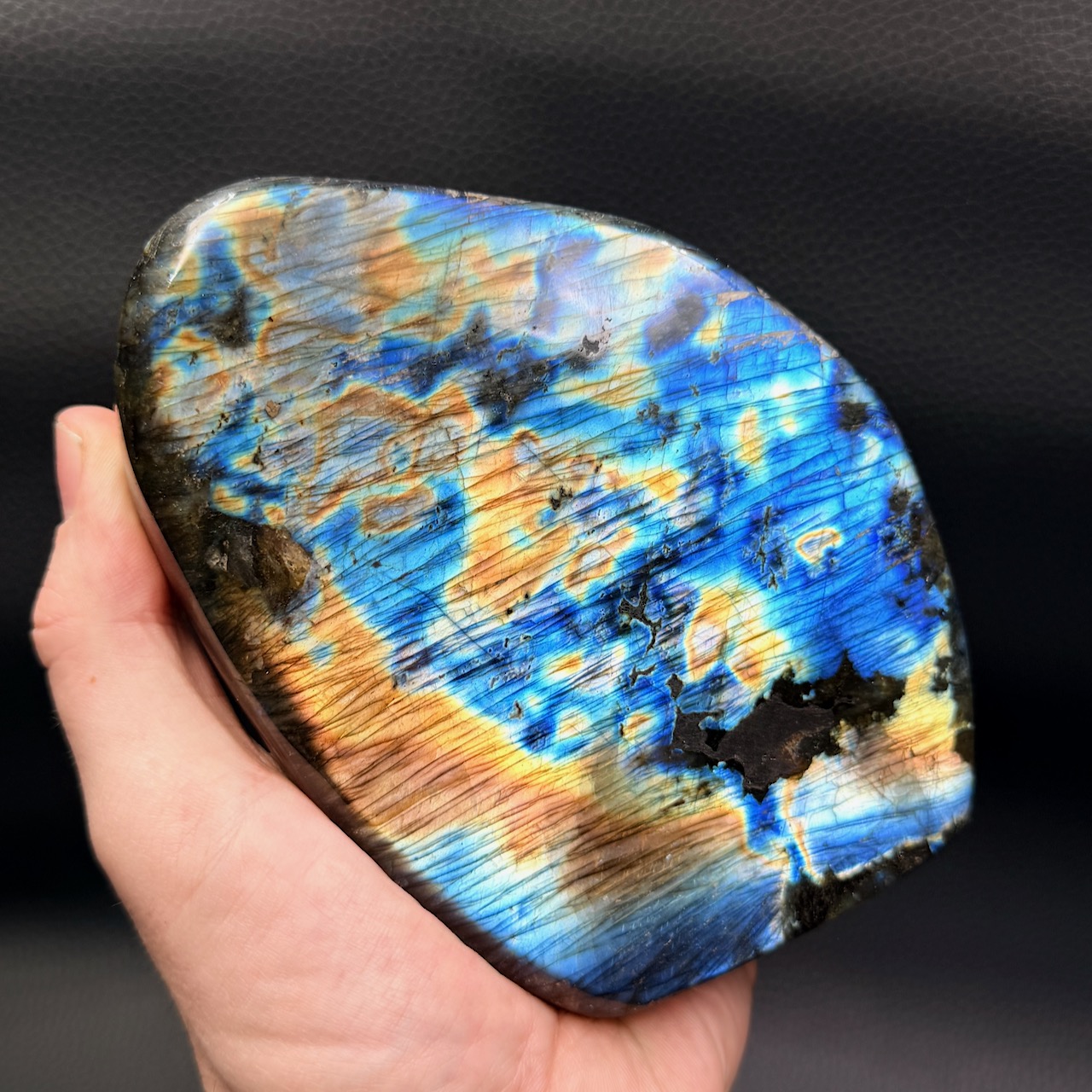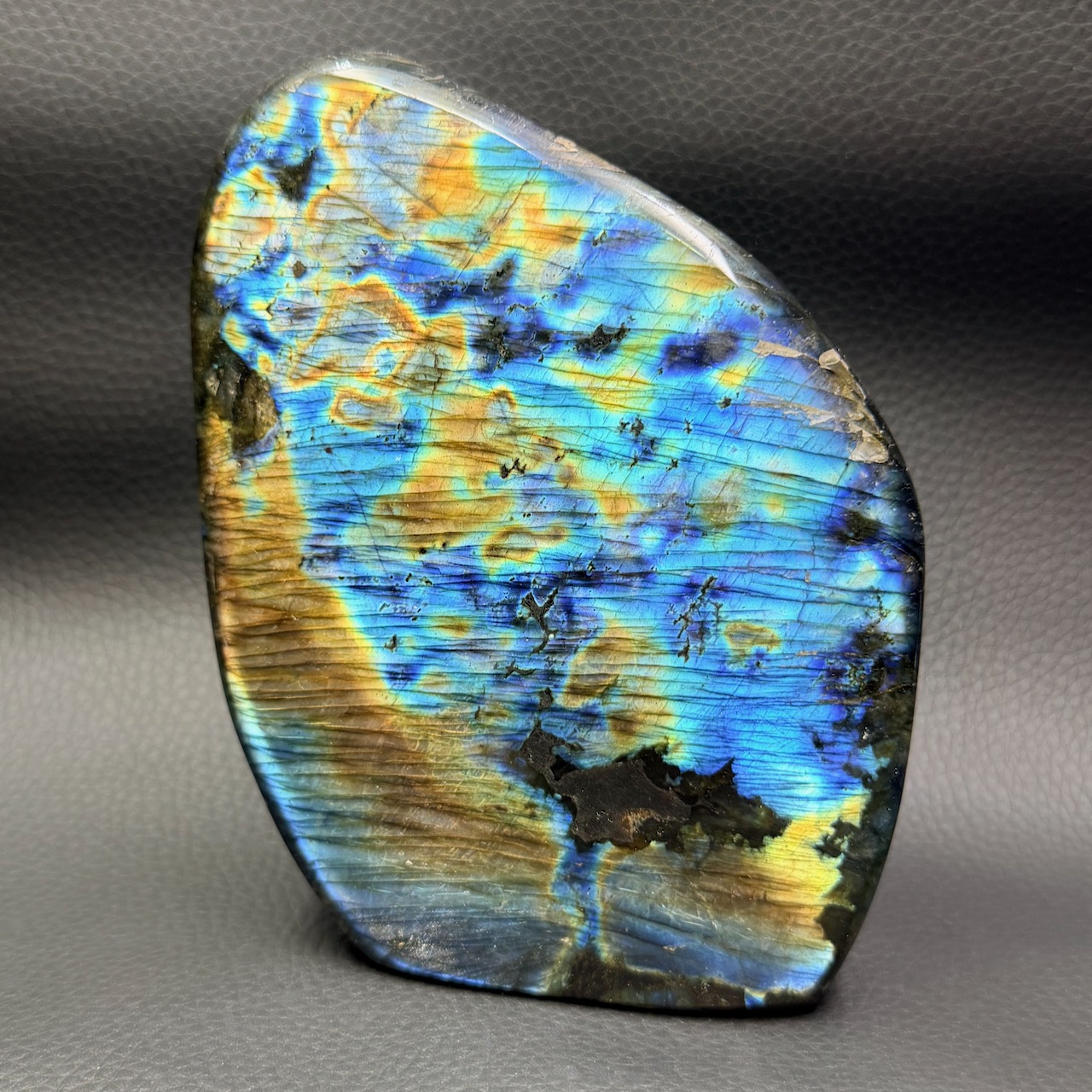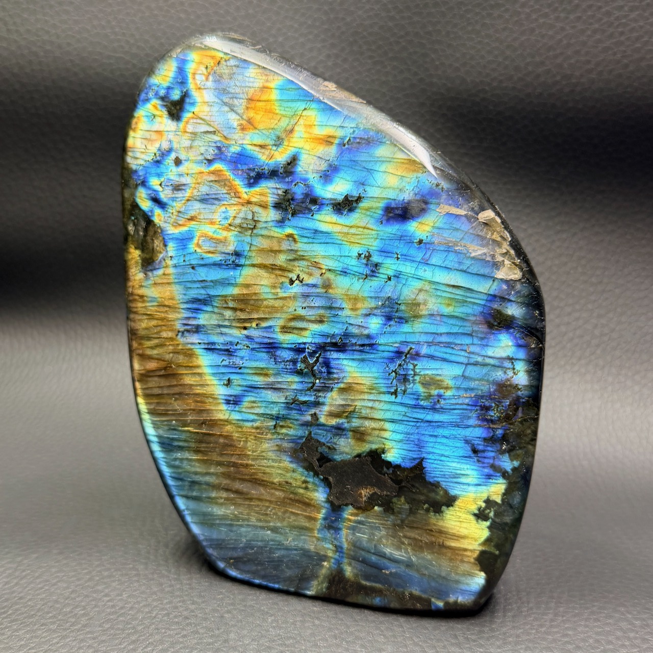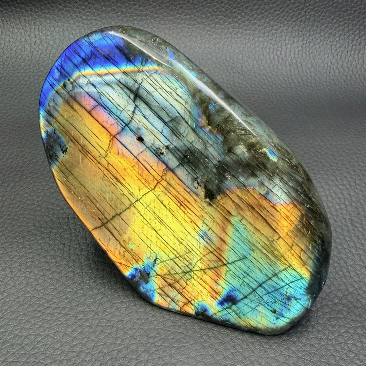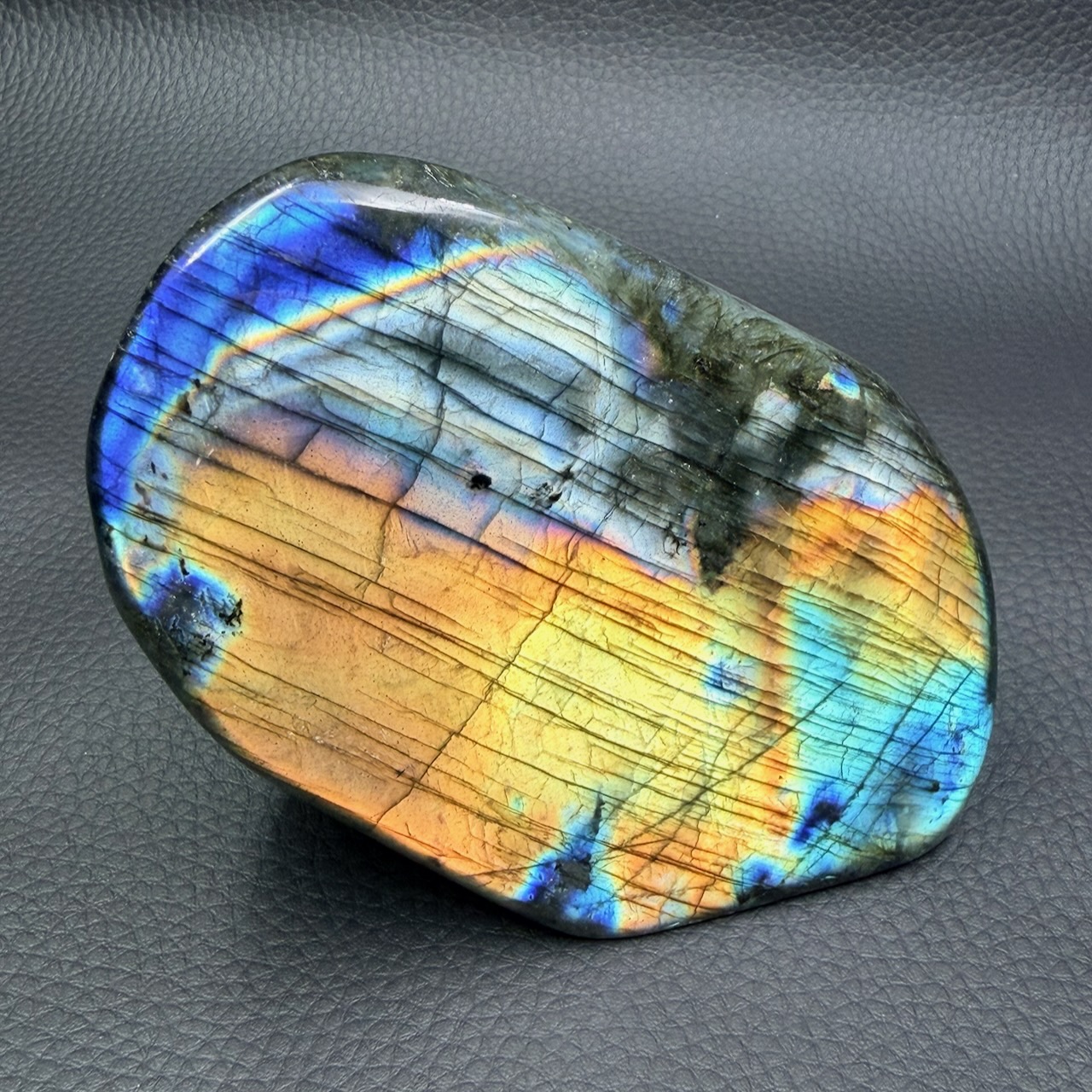 Cette particularité distingue la labradorite de Madagascar de celle d’autres régions du monde, comme le Canada ou la Finlande, où les couleurs sont souvent moins intenses ou plus monotones.