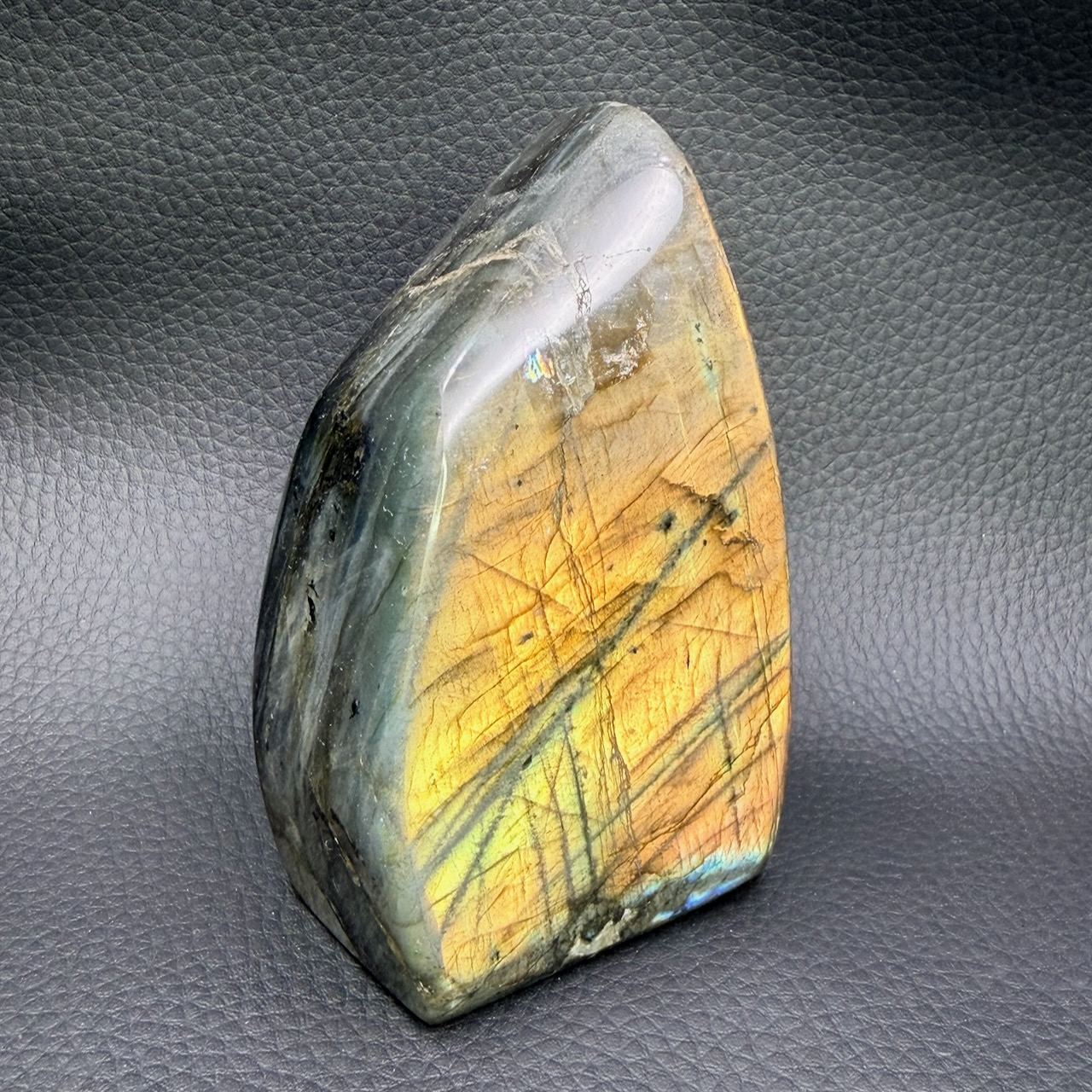 Poids de cette Labradorite Dorée 461 grammes.