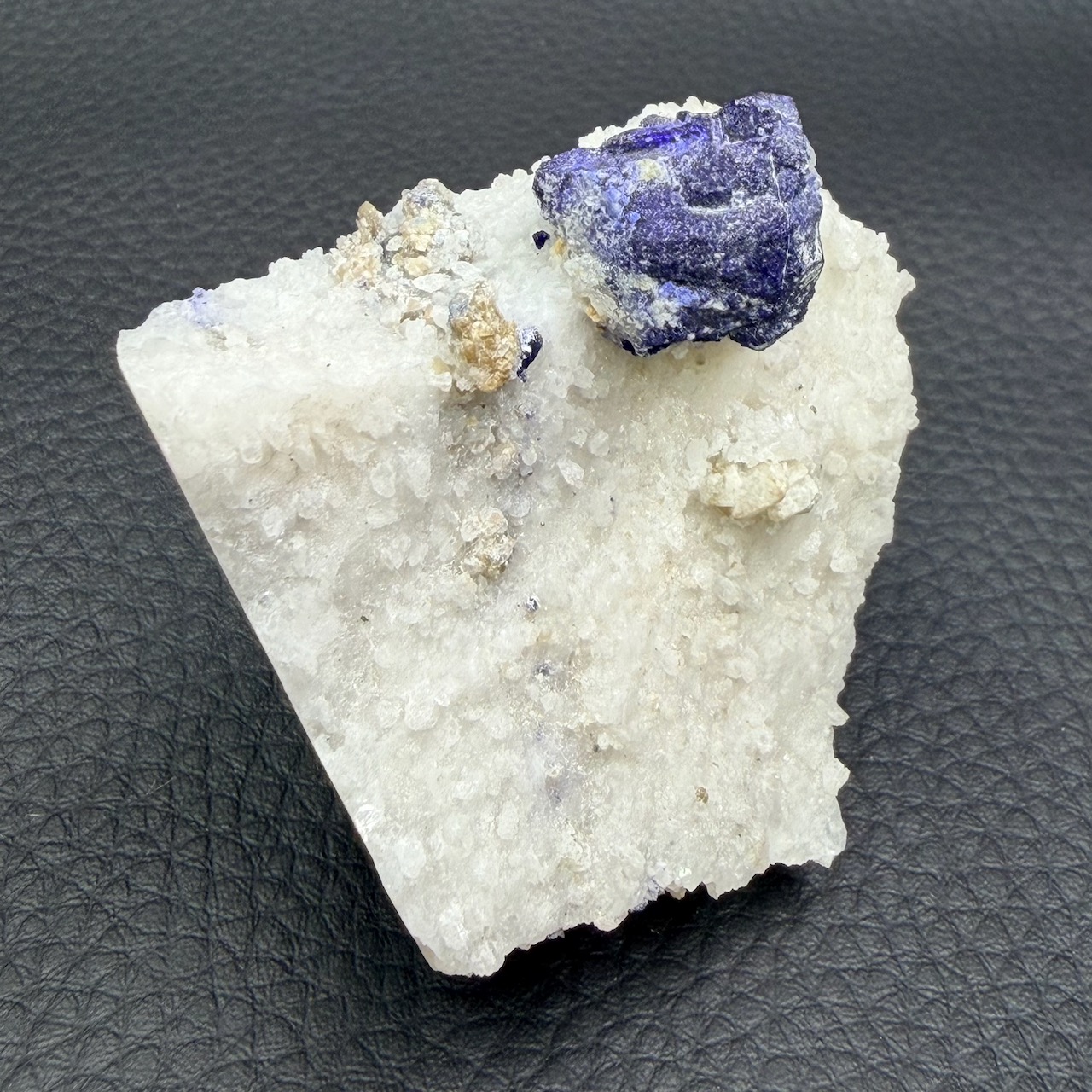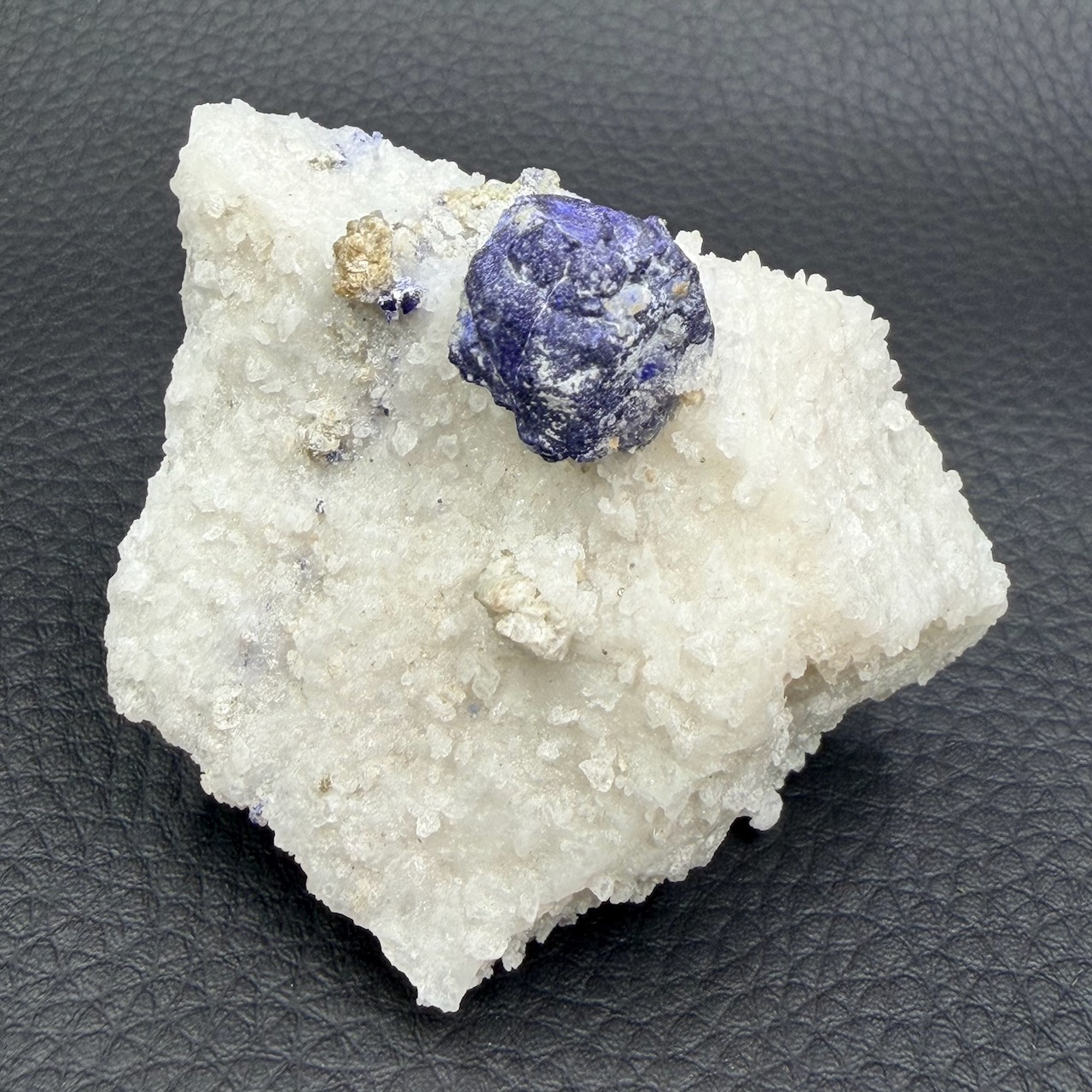 Les conditions métamorphiques qui ont donné naissance au lapis-lazuli ont également permis l’incorporation de minéraux tels que la calcite et la pyrite.