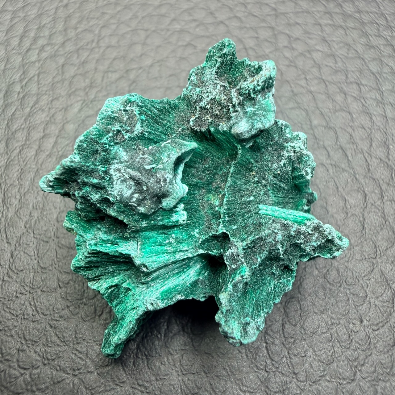 Les fibres qui la composent peuvent être disposées de manière radiale ou parallèle, conférant à la malachite une allure unique.