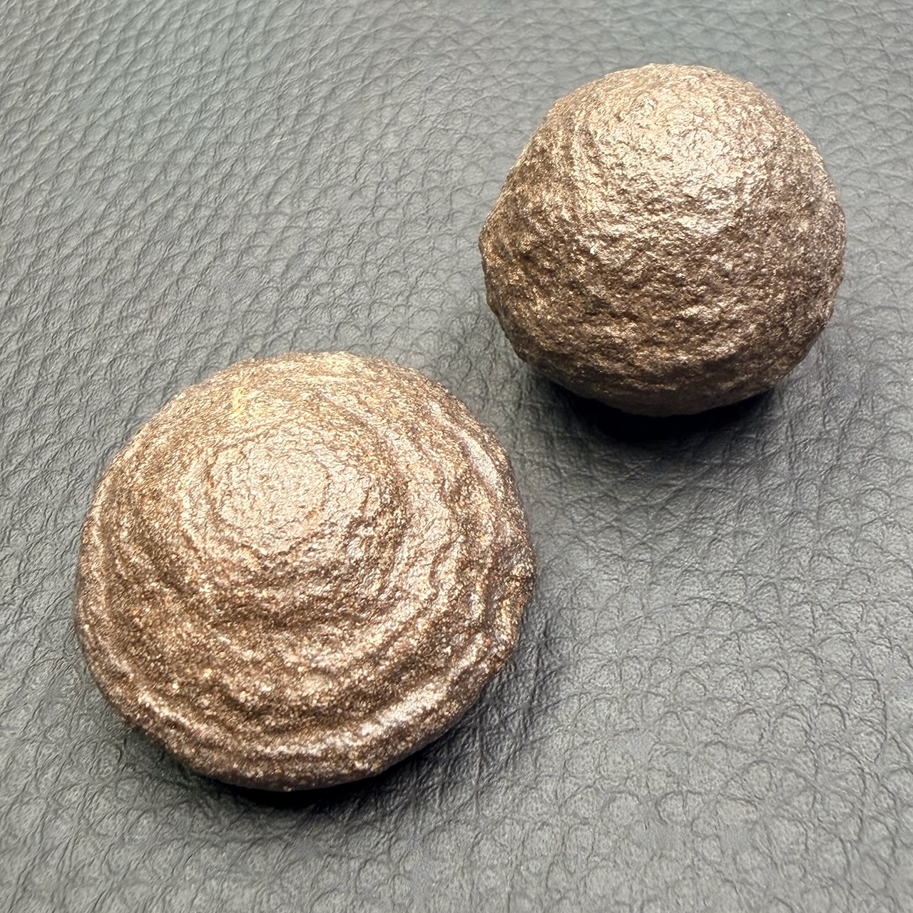 Taille approximative 3,3 cm sur 3,2 cm sur 1,8 pour l’autre.