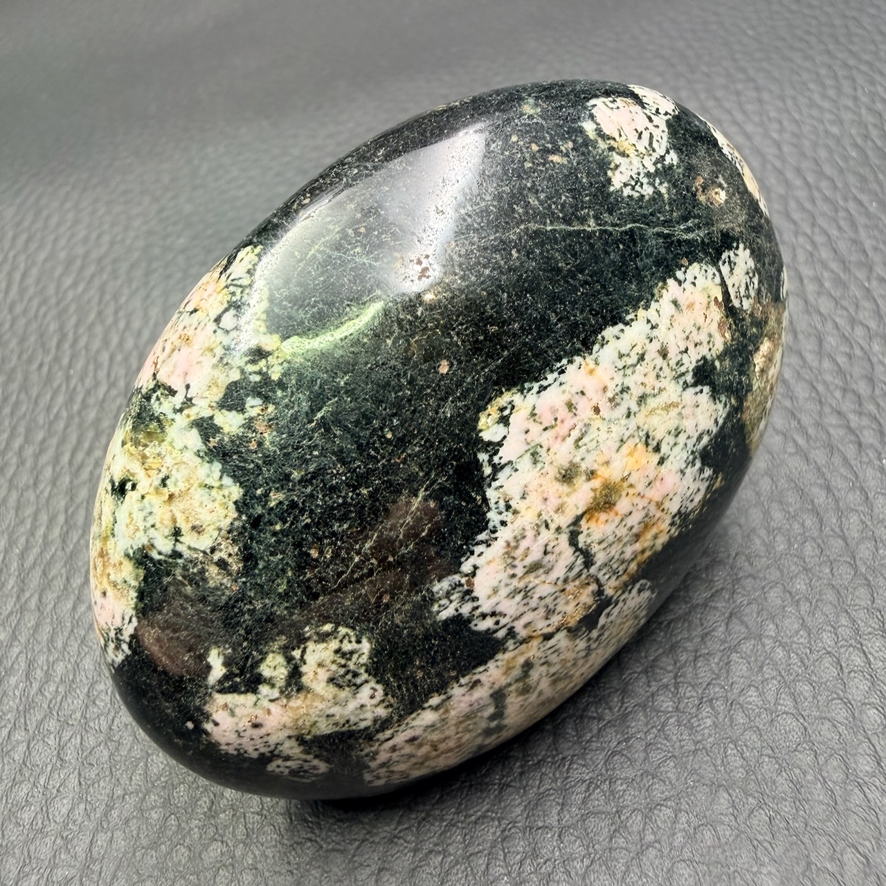 Taille du galet en Obsidienne Flocon de Neige : 7 cm sur 5,1 cm sur 2 cm.