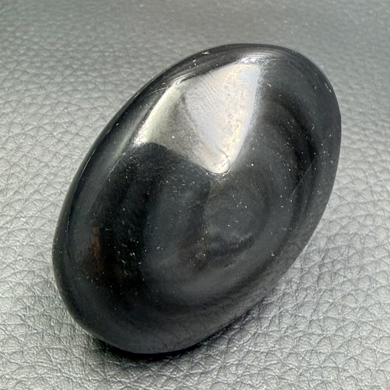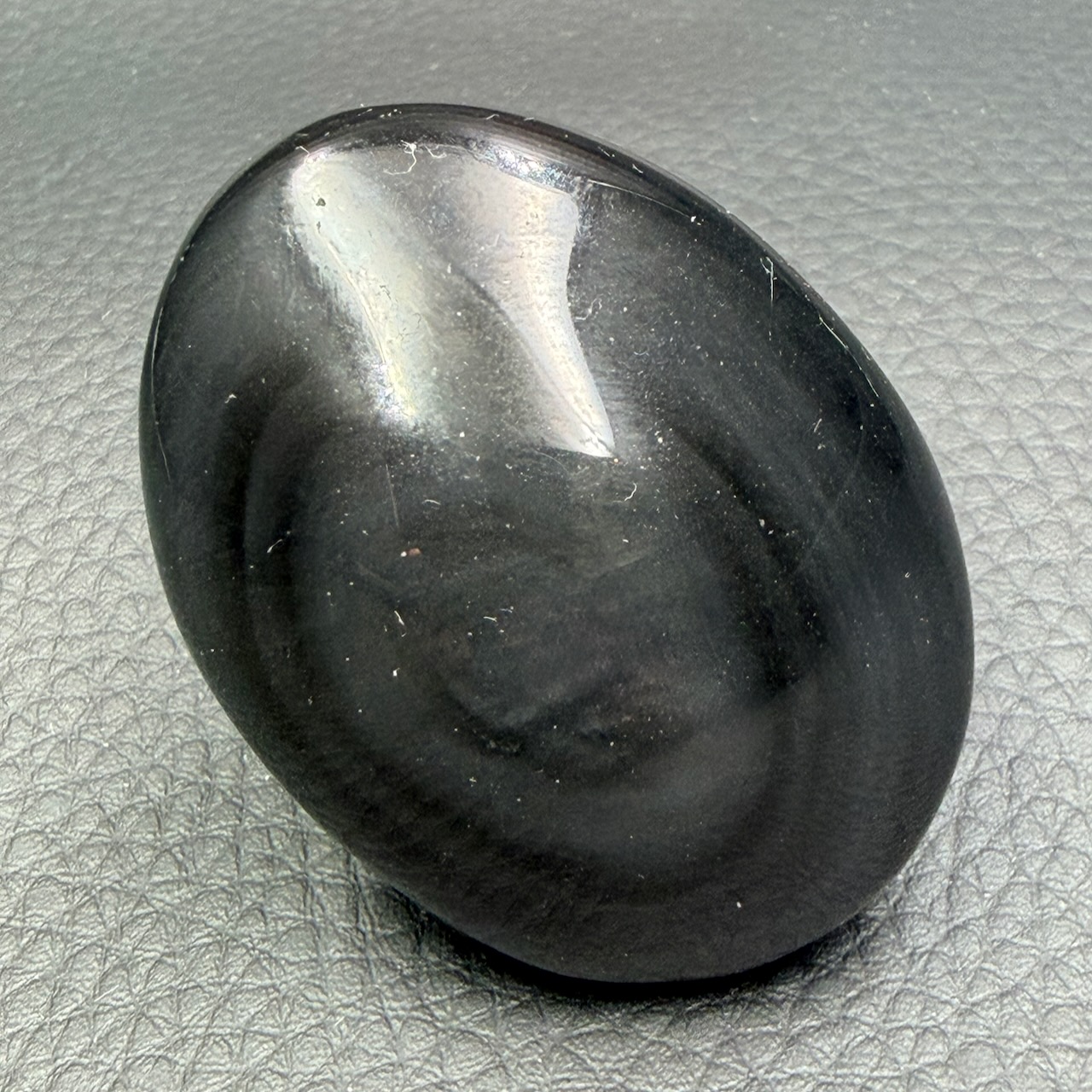 Taille du galet en Obsidienne Noire : 5,1 cm sur 3,8 cm sur 2,7 cm.