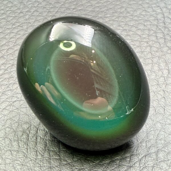 Extrêmement rare, cette obsidienne oeil céleste présente des reflets bleuâtres subtils. Certains pensent qu’elle est issue d’une formation spécifique de gaz piégés dans la roche, bien que son existence soit souvent sujette à controverse en raison de la difficulté à la trouver à l’état naturel.