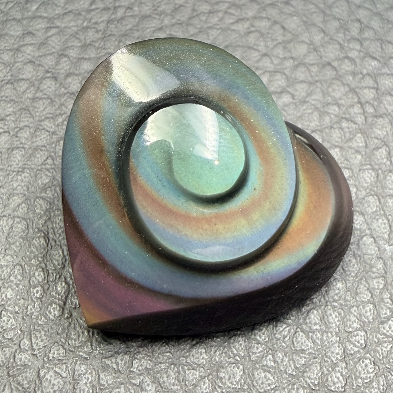 Les obsidiennes oeil céleste réfléchisses la lumière du soleil selon les angles, de manière que les reflets jaunes, verts, violets, bleus gris, dorés et argentés soit visible a l’ail nu, ce phénomène est appelé arc-en-ciel ou oeil céleste.