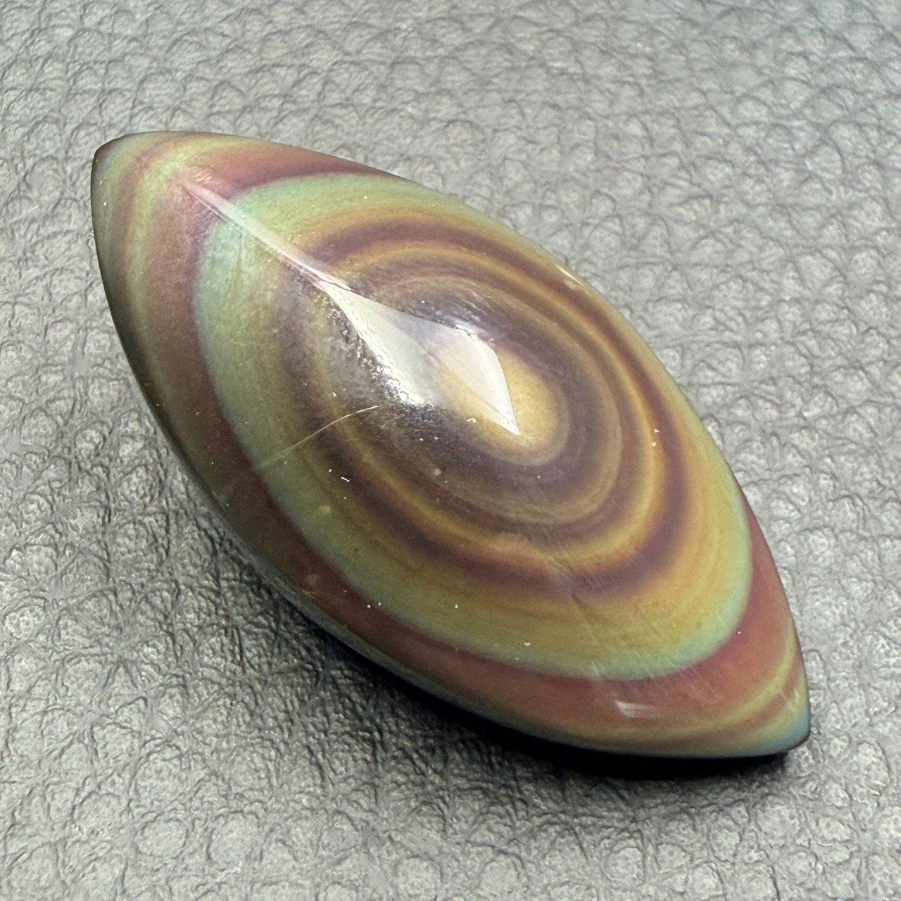 Taille de cette Obsidienne oeil céleste suprême 4,5 cm sur 2,1 cm sur 1,4 cm.