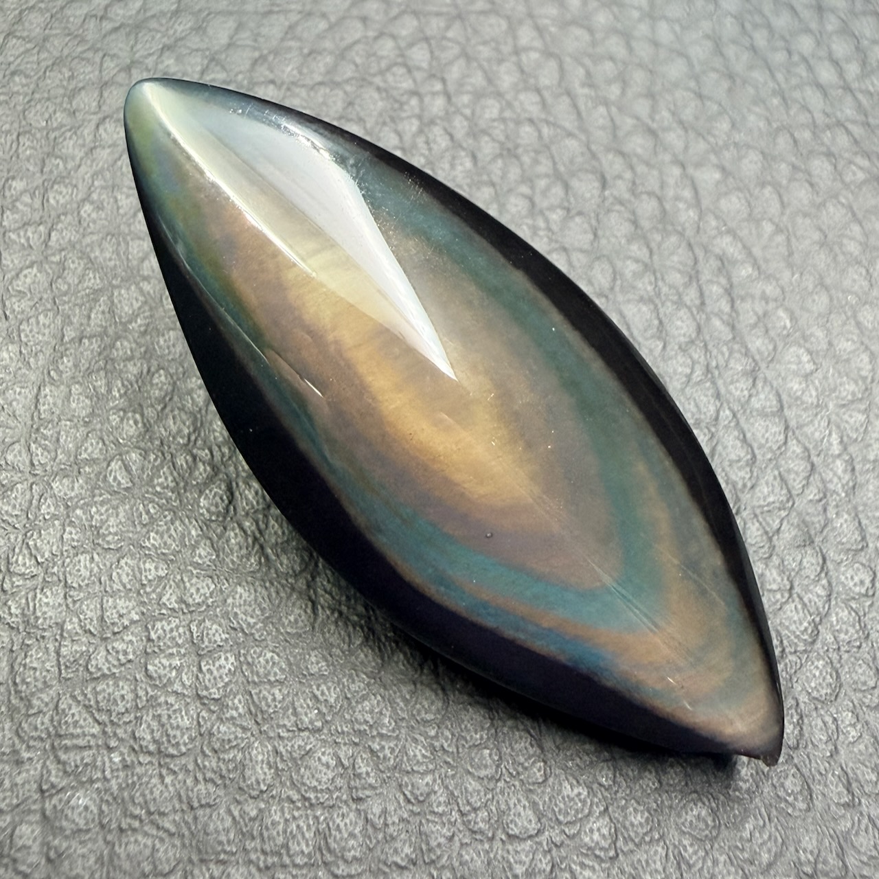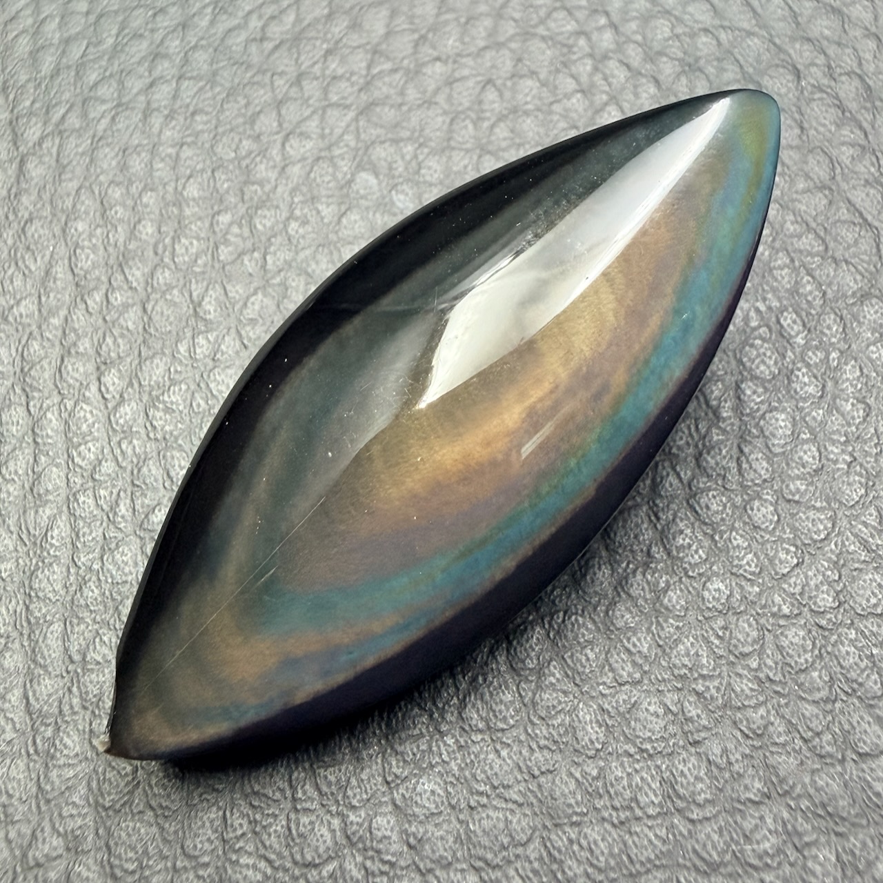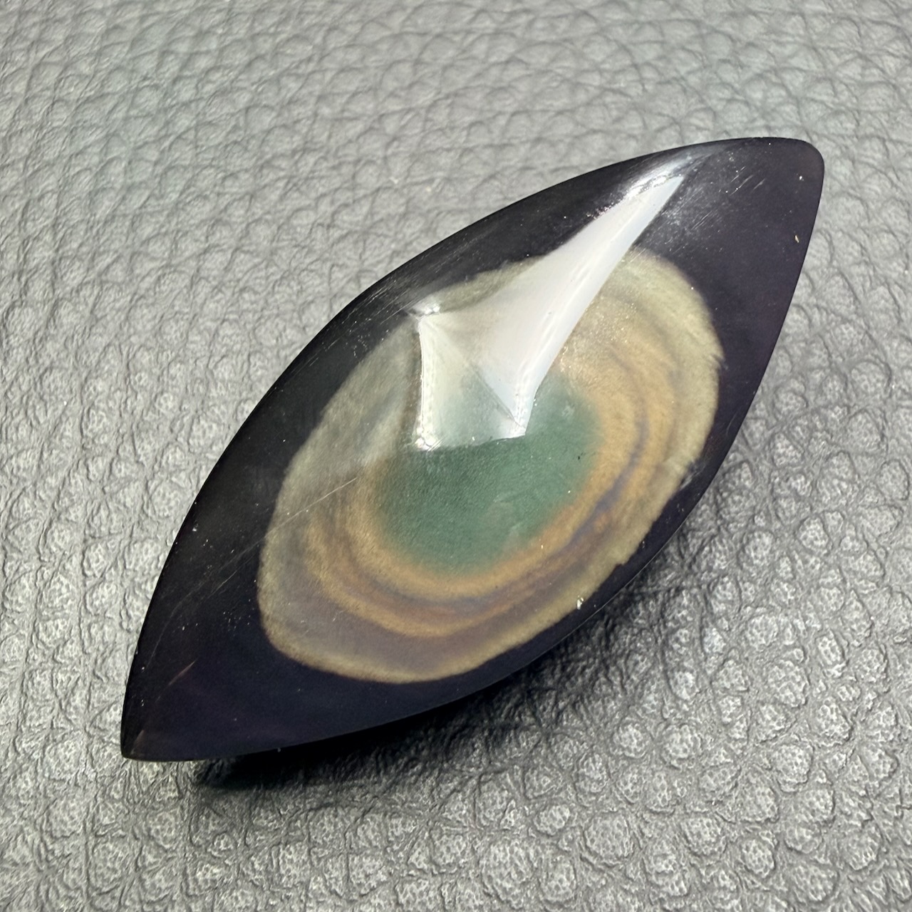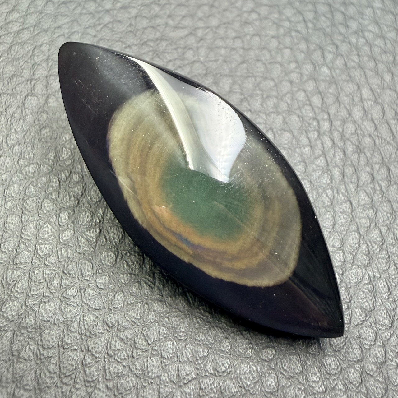 Dimensions de cette Obsidienne oeil céleste 4,9 cm sur 2 cm sur 1,2 cm.