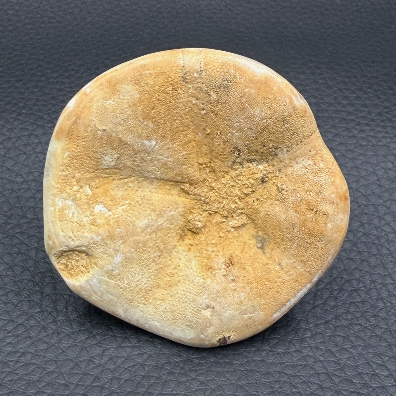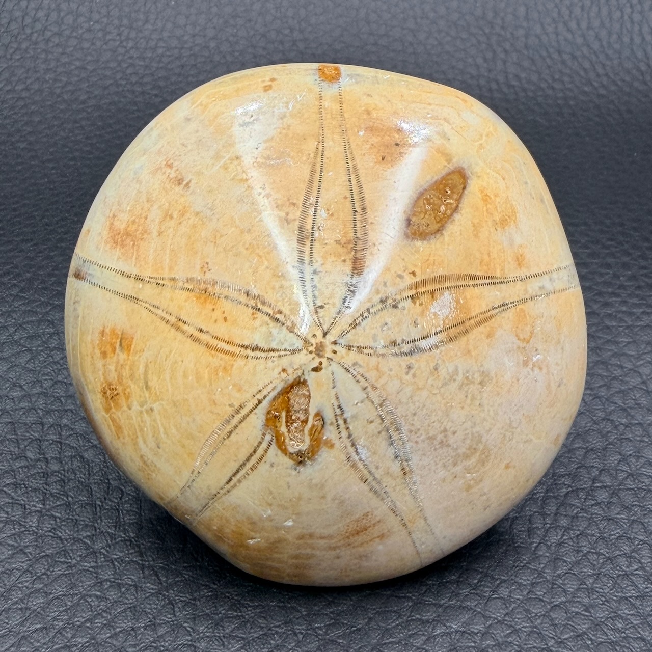 Dimensions de cet Oursin Fossile 6,4 cm sur 6,4 cm sur 2,2 cm.
