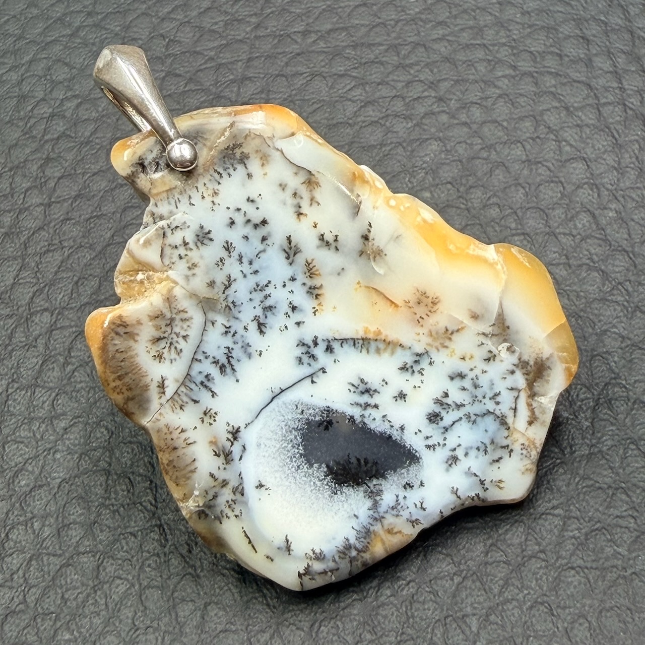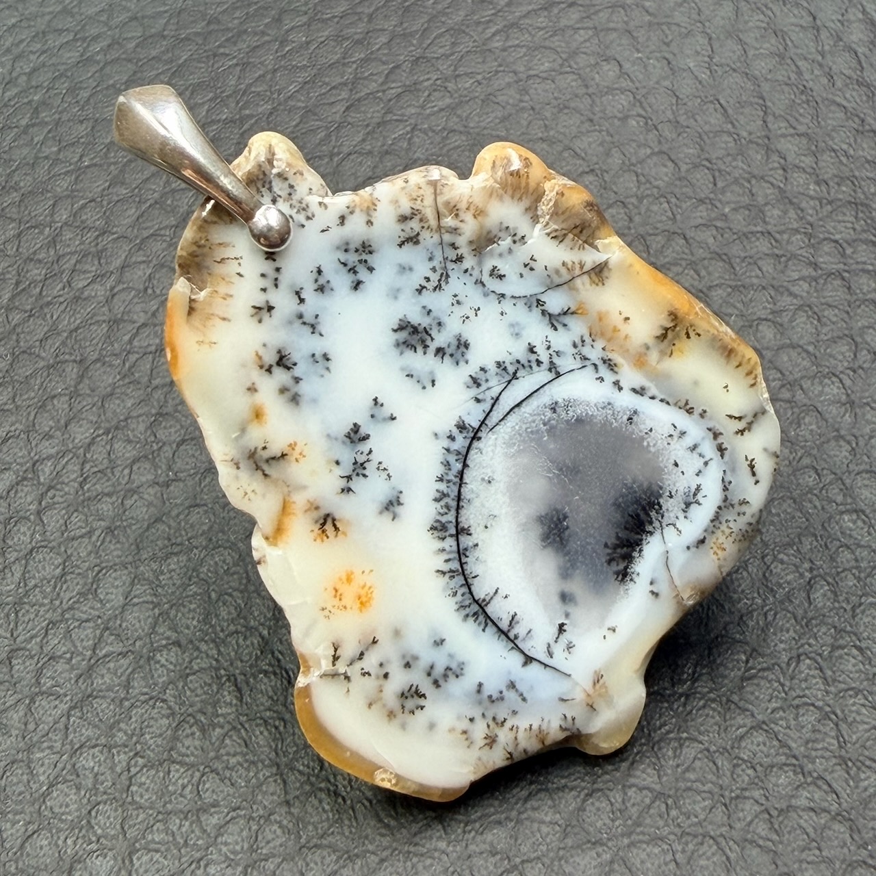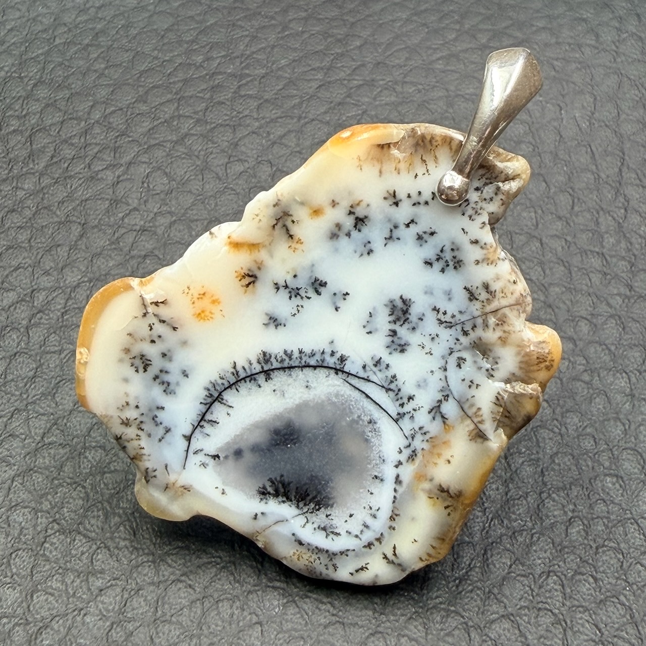Taille du pendentif agate dendritique hors bélière 3,8 cm sur 3,1 cm sur 0,4 cm.
