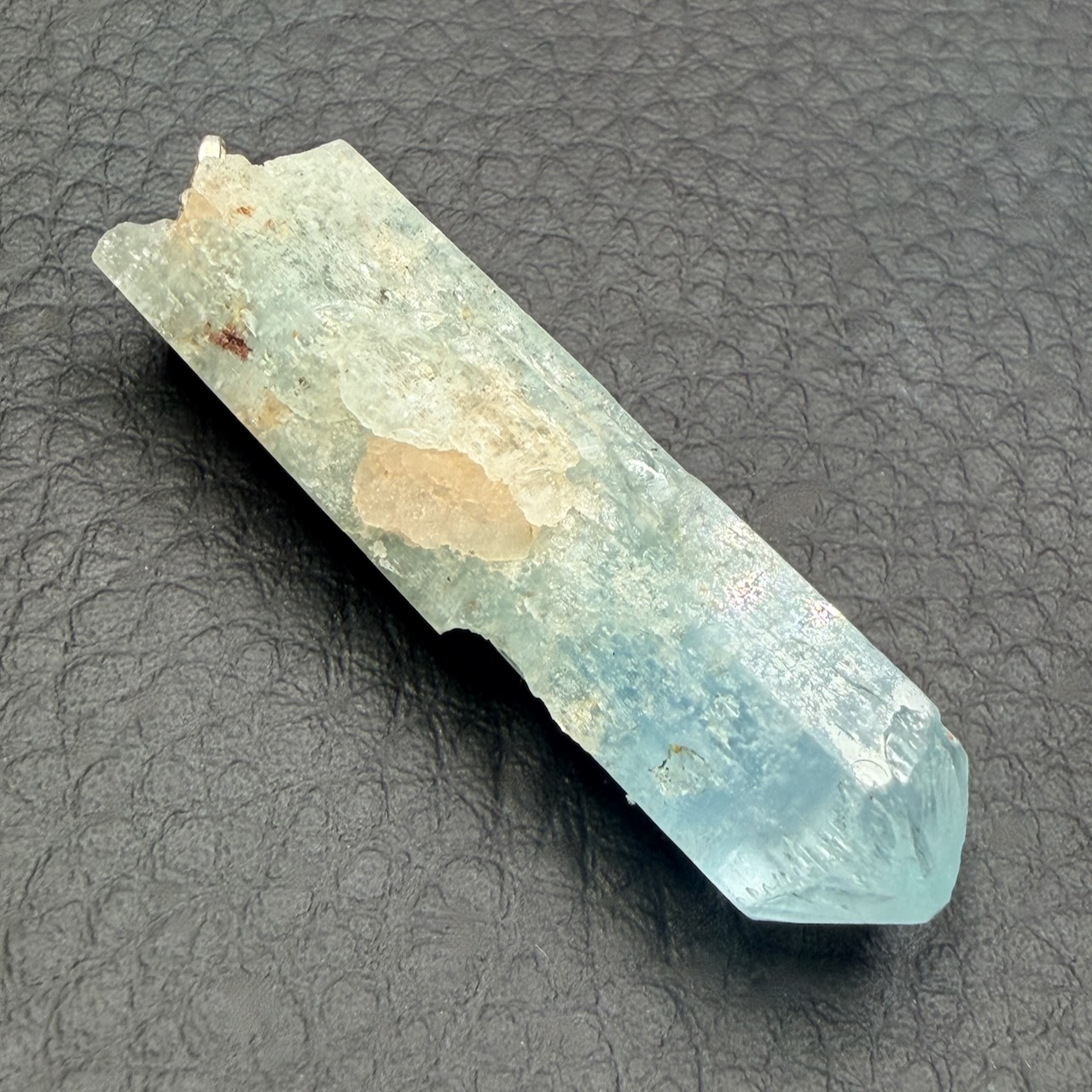 Placer le pendentif aigue marine au soleil peut être un plus quand la pierre a beaucoup travaillé.