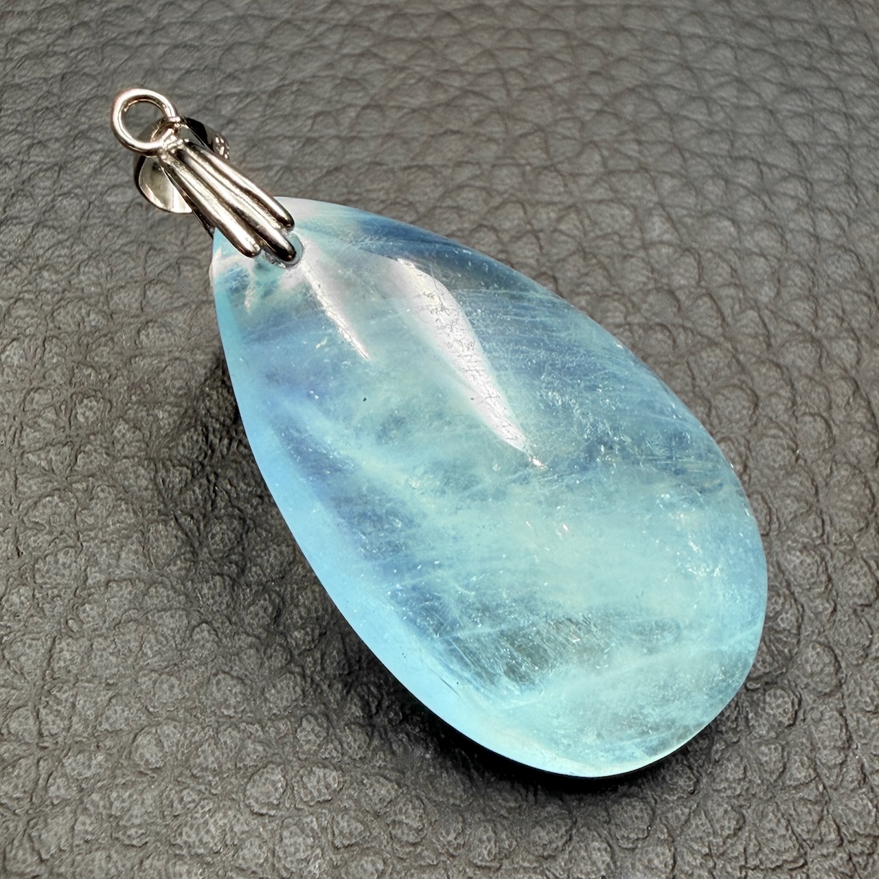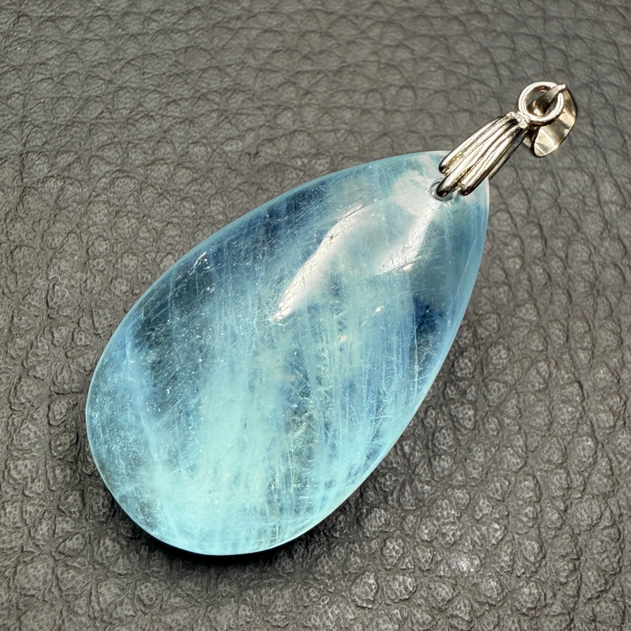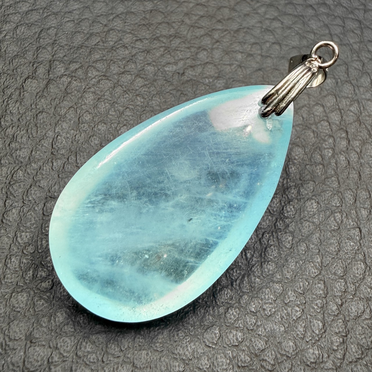 Placer le pendentif aigue marine au soleil peut être un plus quand la pierre a beaucoup travaillé.