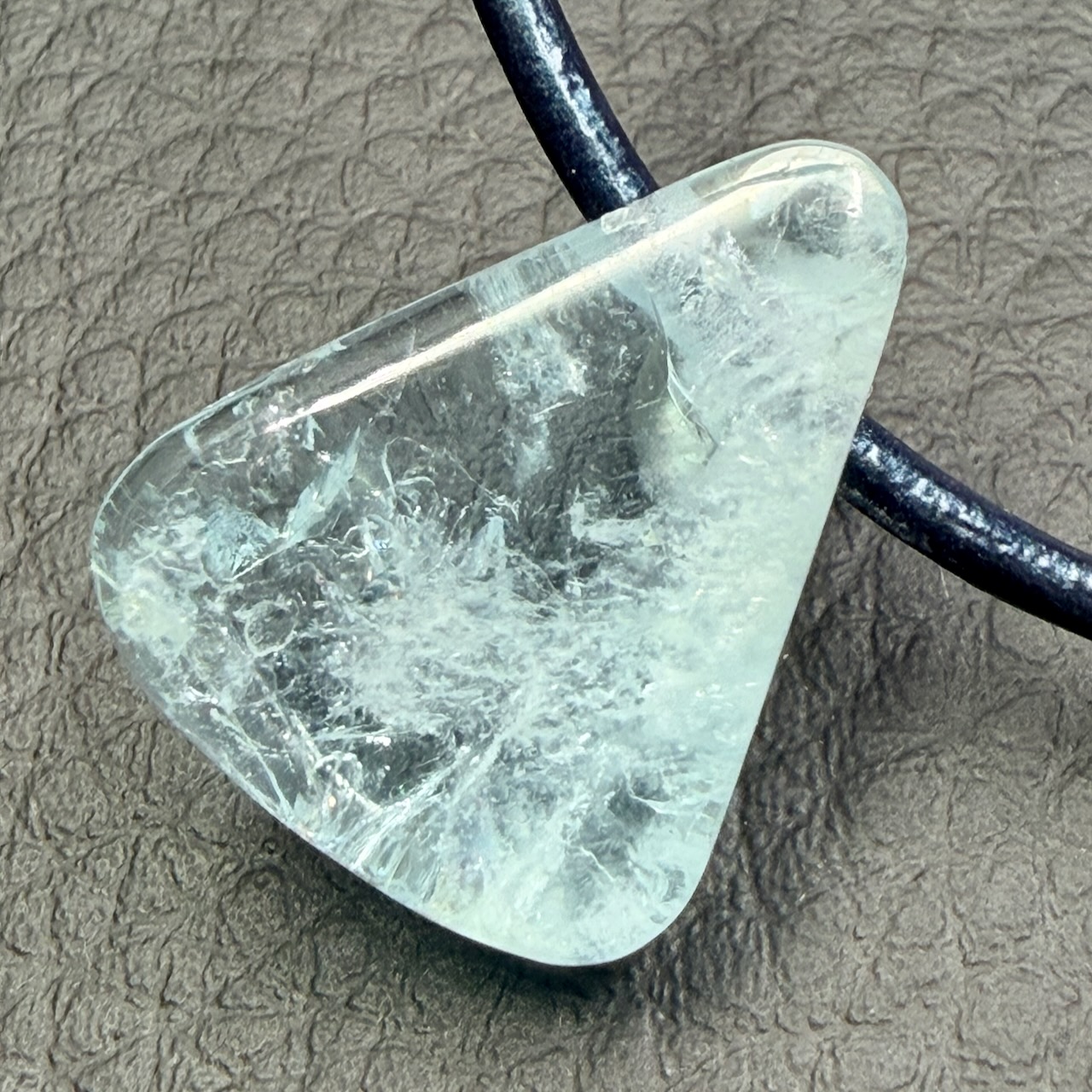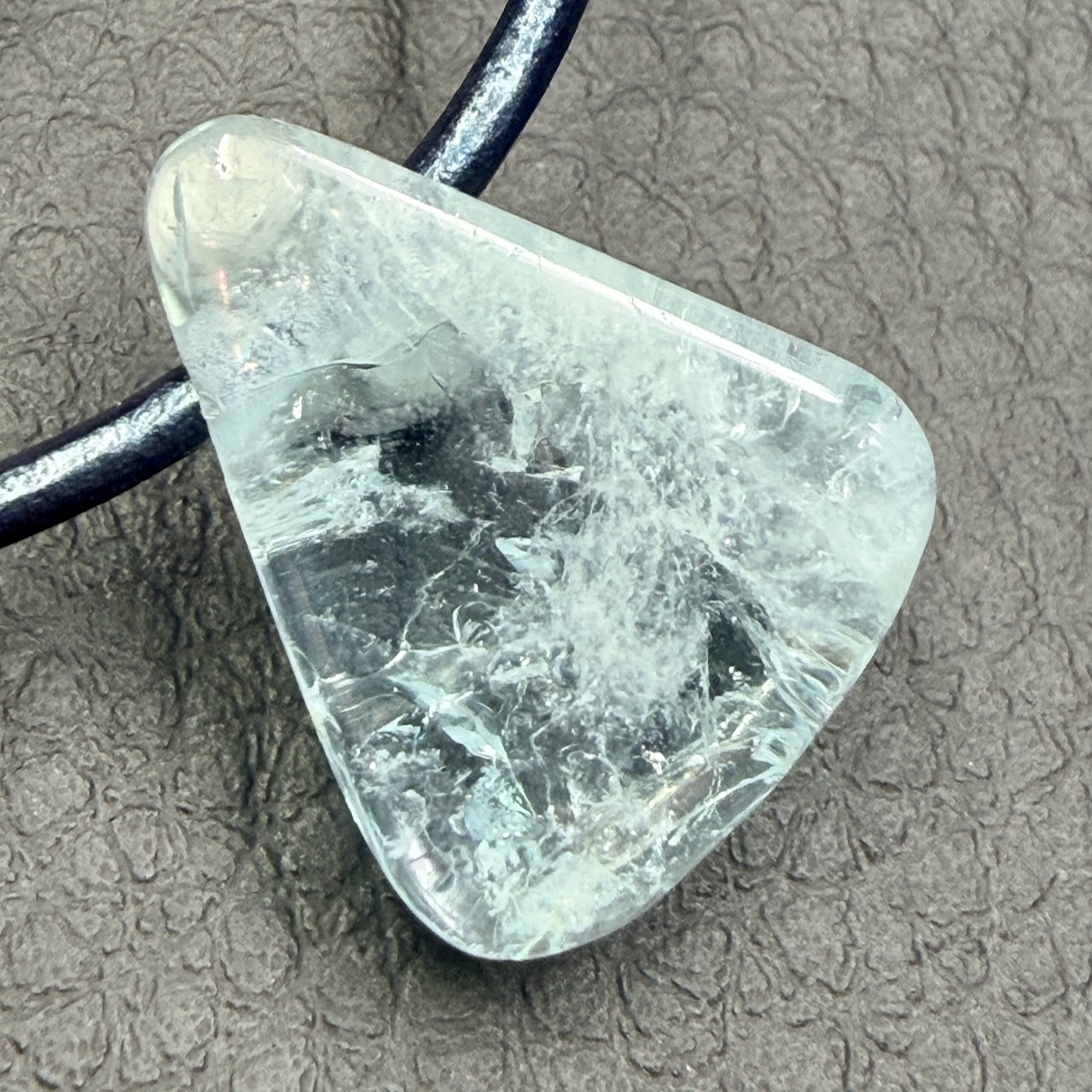 Placer le pendentif aigue marine au soleil peut être un plus quand la pierre a beaucoup travaillé.