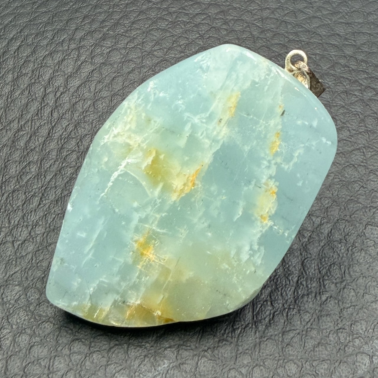 Superbe pierre à porter d’un bleu nuageux.