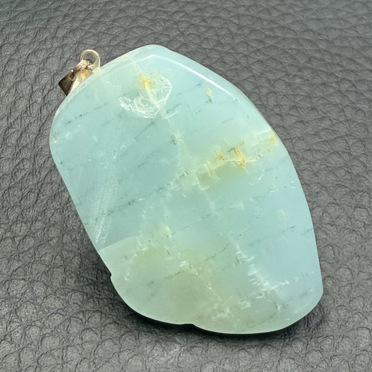 Placer le pendentif aigue marine au soleil peut être un plus quand la pierre a beaucoup travaillé.