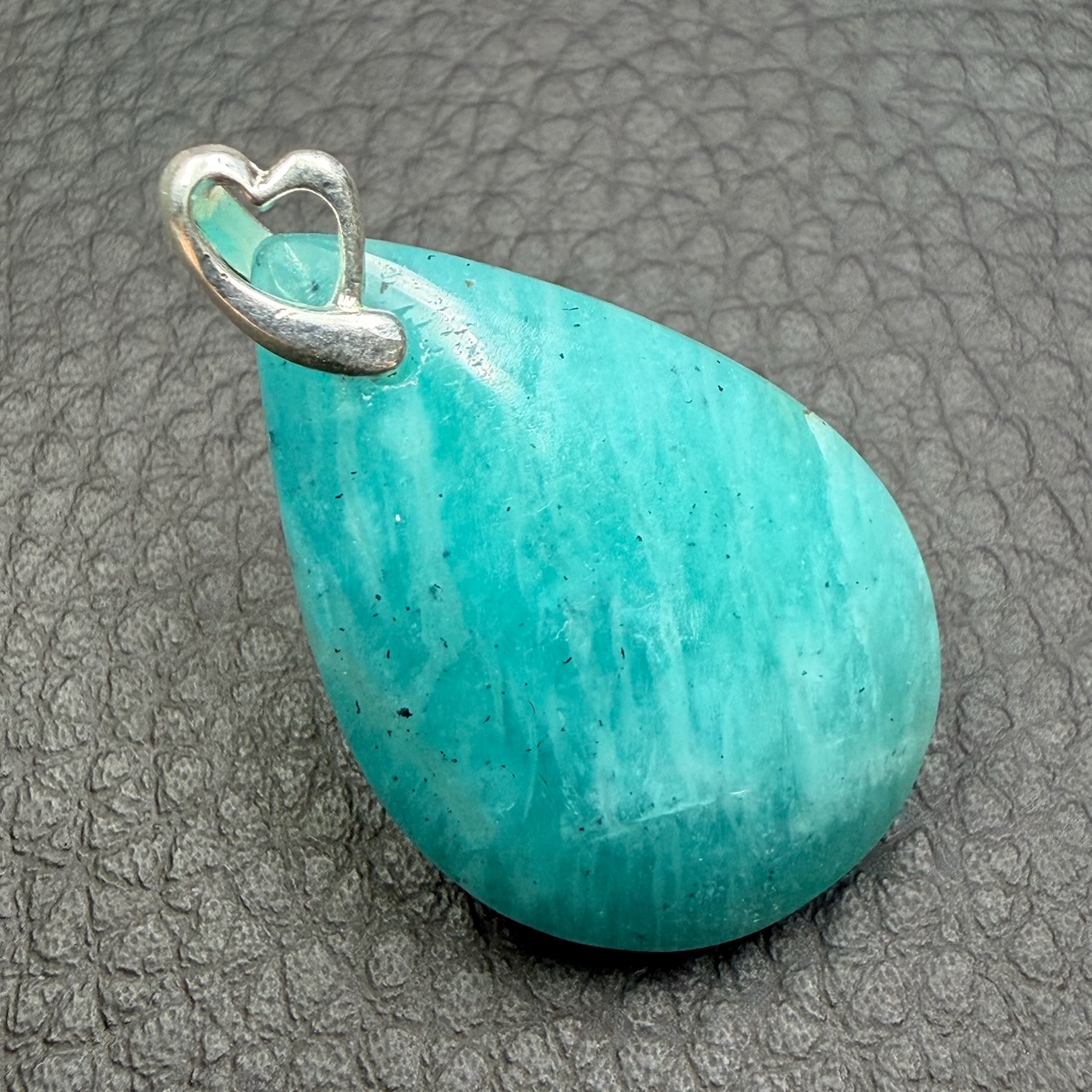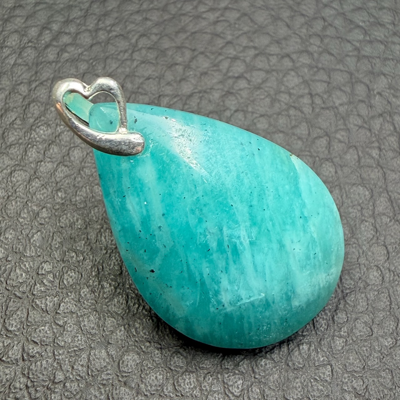 Le pendentif amazonite a une forte ressemblance a la turquoise, cette pierre confère les vertus de l’amour et de la tendresse en lithothérapie.