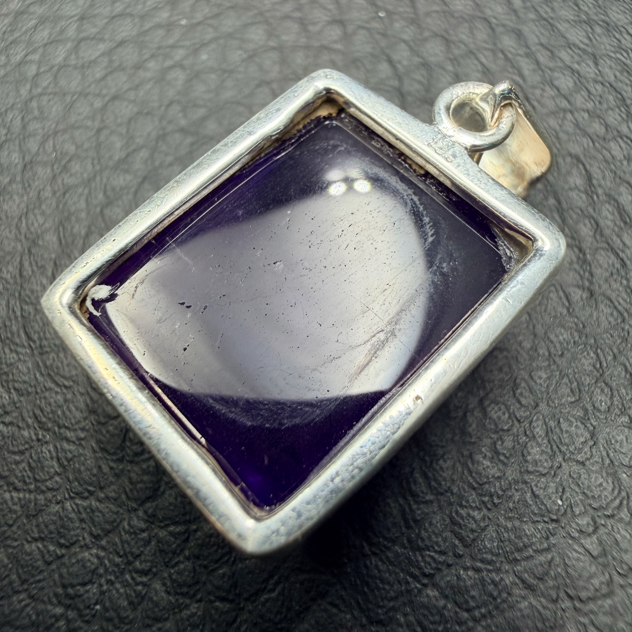 Taille du pendentif améthyste hors bélière 2,2 cm sur 1,9 cm sur 1,1 cm.