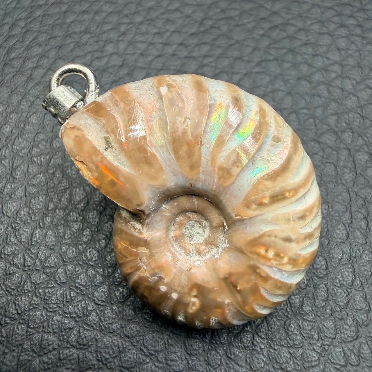 Dimensions du pendentif ammonite 3,2 cm sur 2,6 cm sur 1,1 cm.