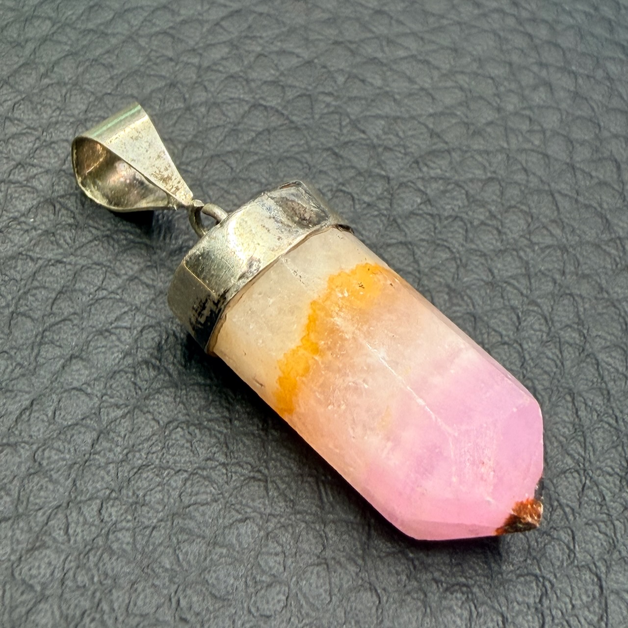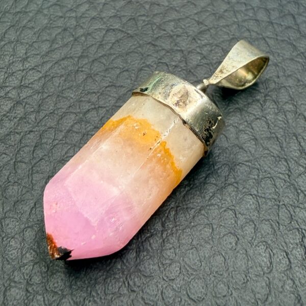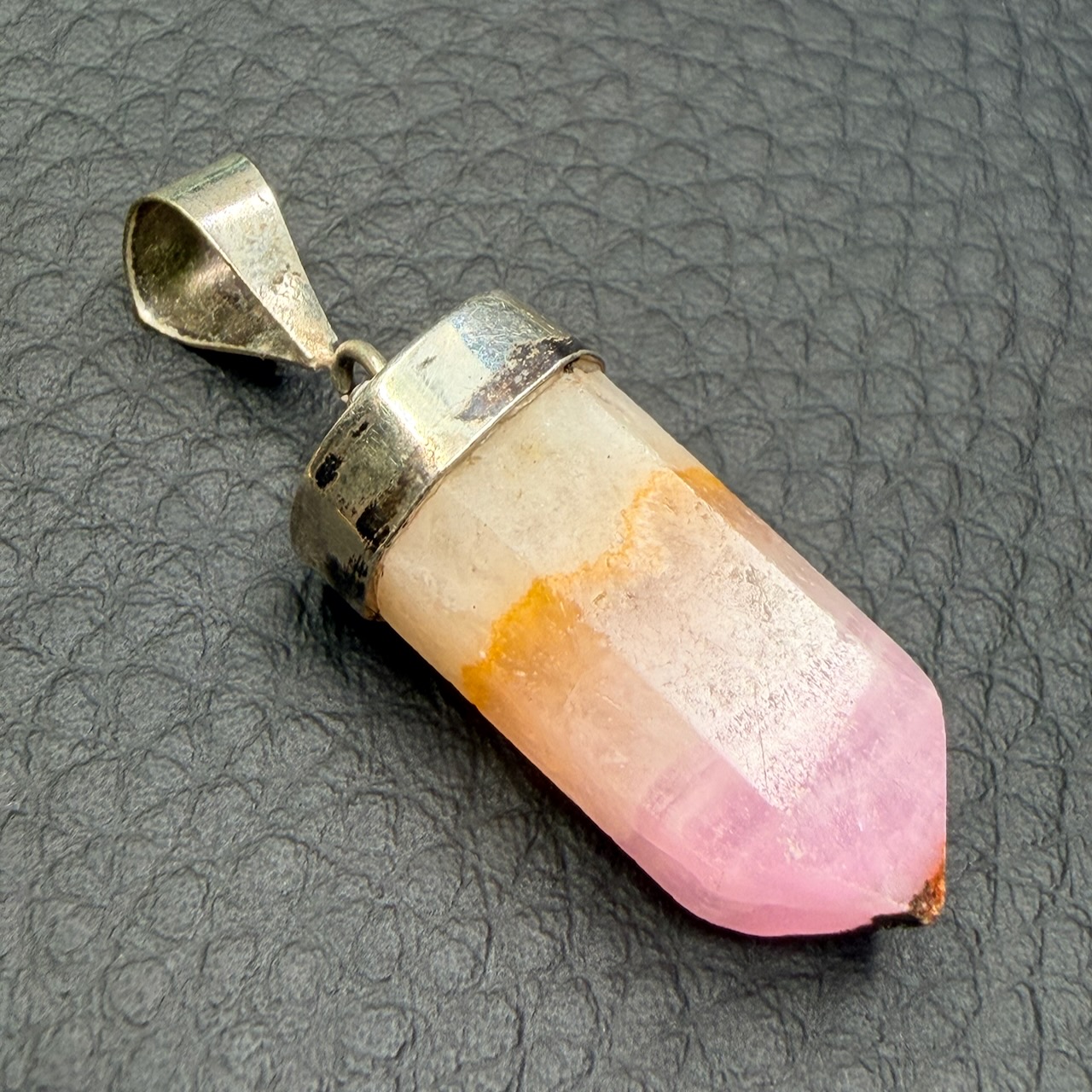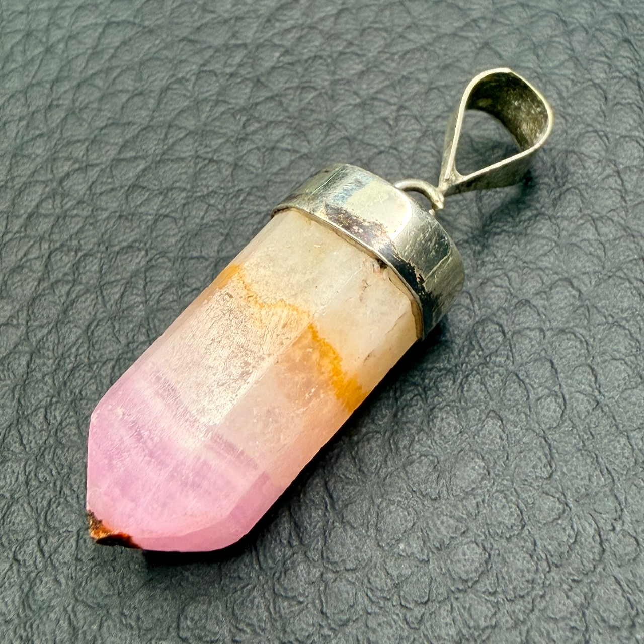 Taille du pendentif aragonite rose hors bélière 2,5 cm sur 1,1 cm sur 0,9 cm.