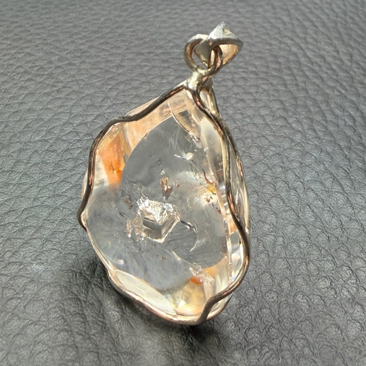 Voici une merveille de dame nature, un bijou exceptionnel le pendentif en cristal de roche avec prisme négatif.