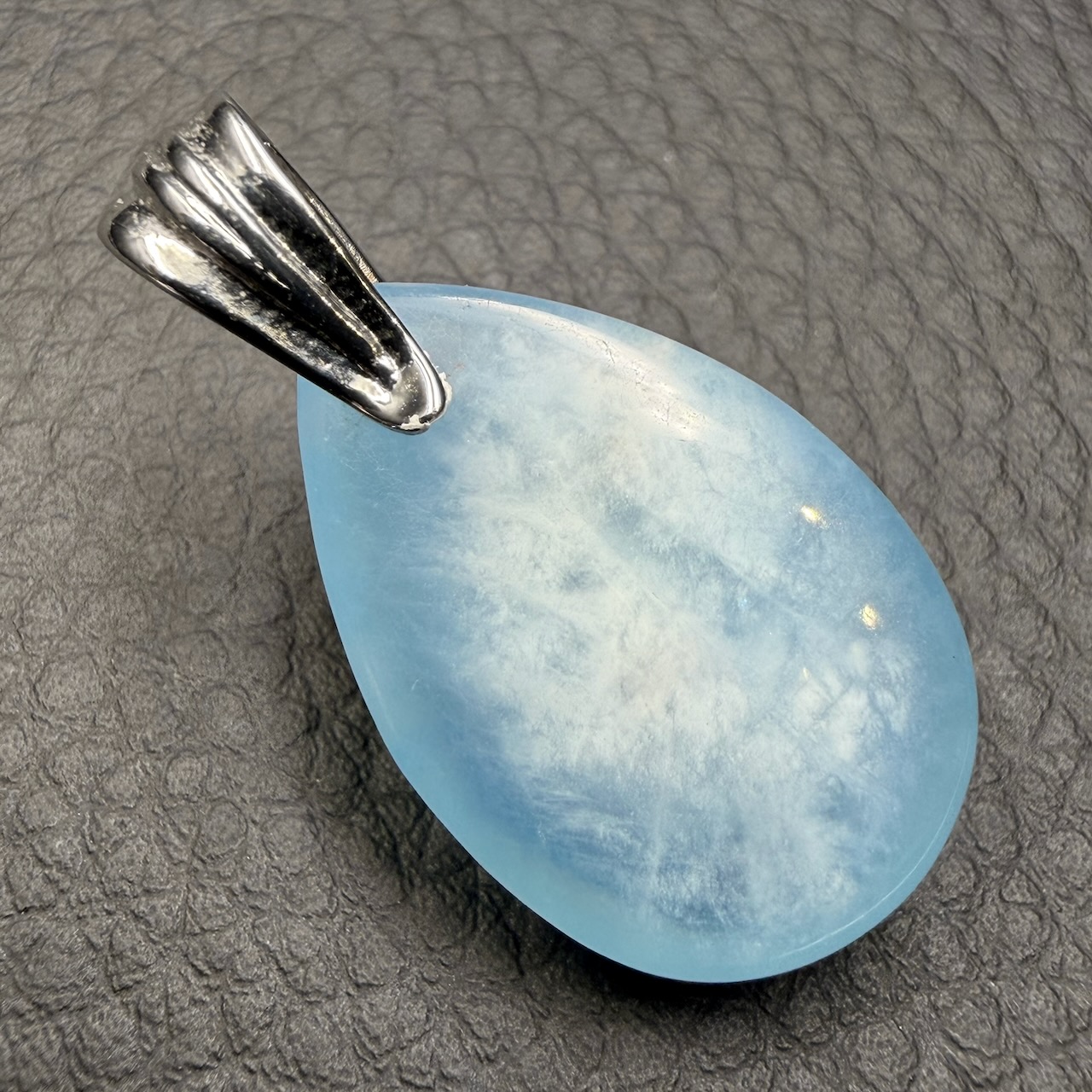Le pendentif en aigue marine du Brésil est un bijou qui ne triche pas : il ne cherche pas l’éclat excessif, il se suffit à lui-même.