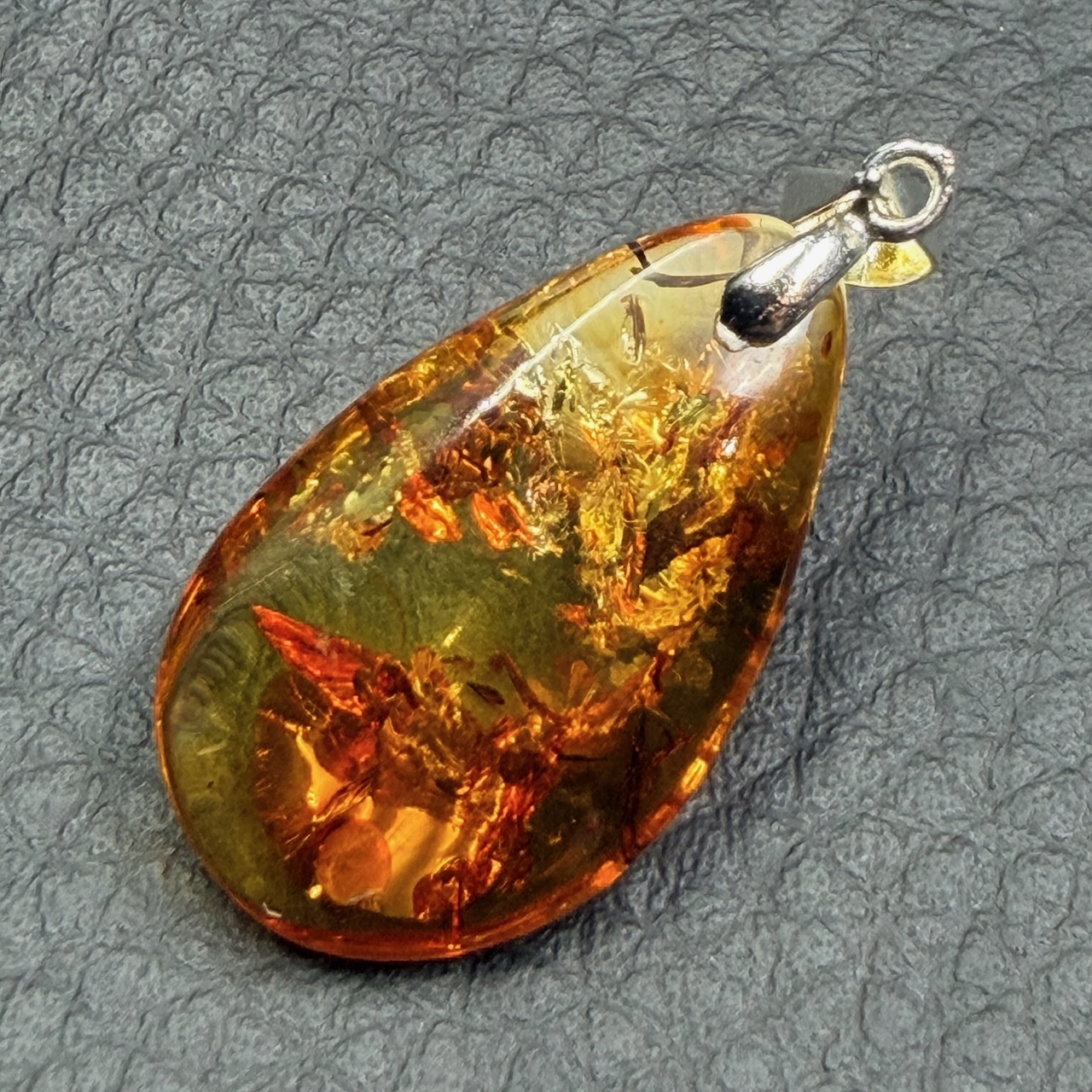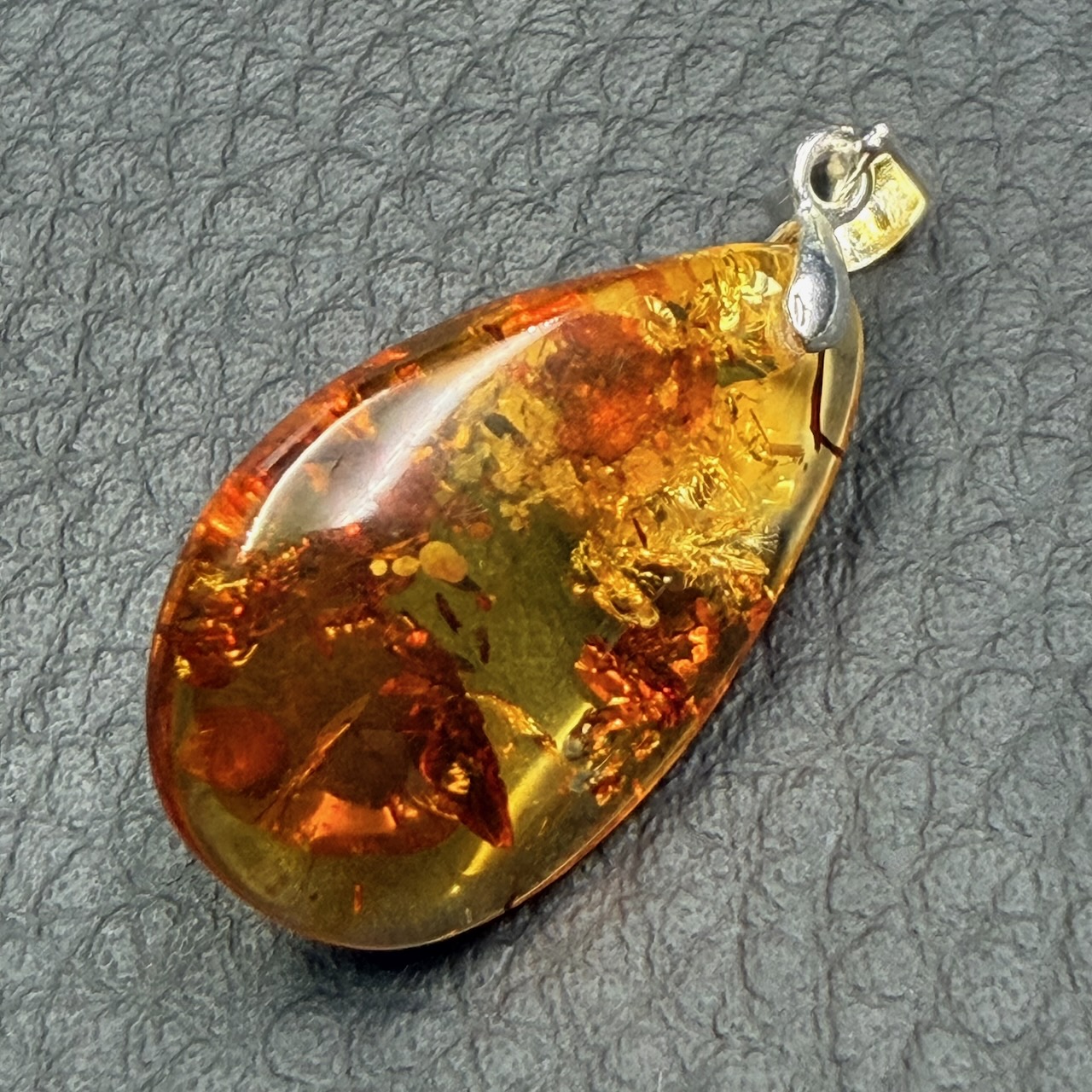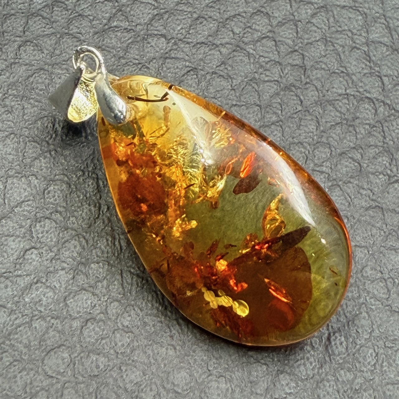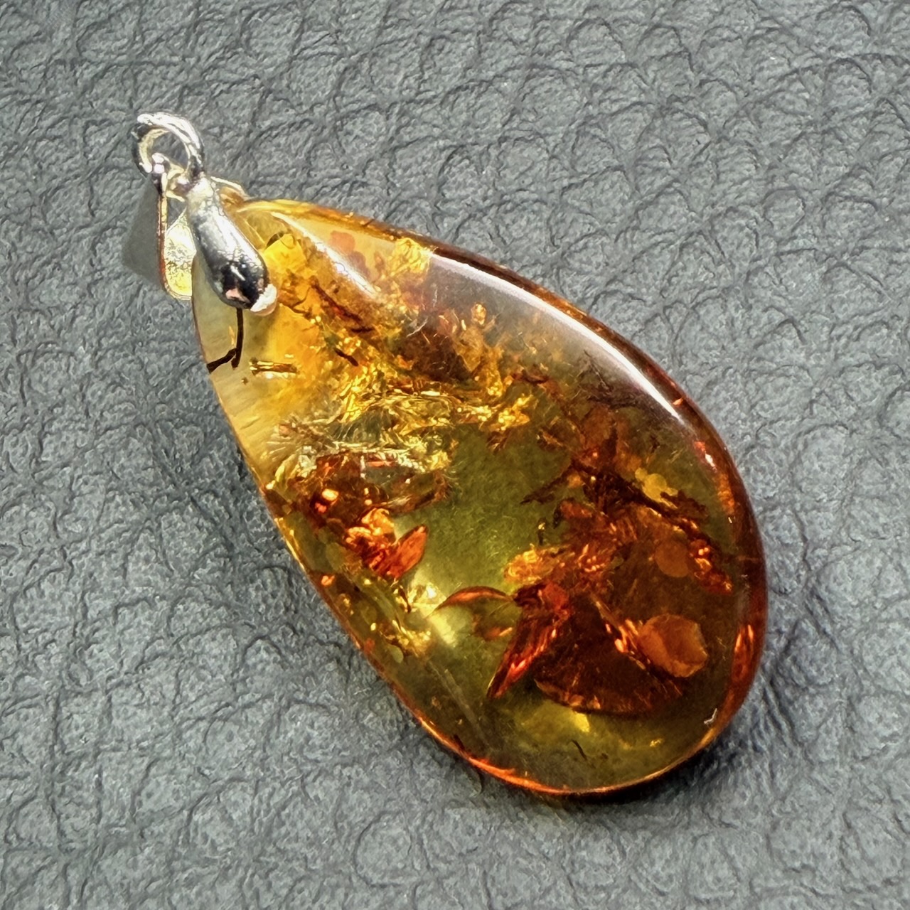 Cette résine fossile est utilisée pour la confection de bijoux comme ce superbe pendentif en ambre de la mer baltique.
