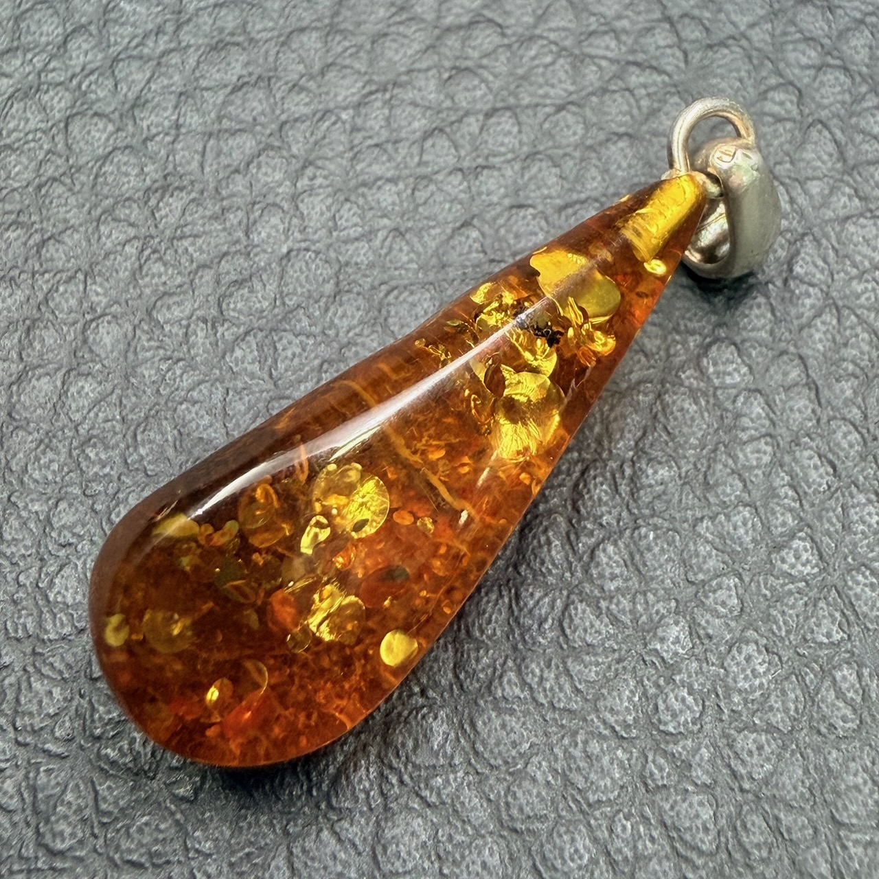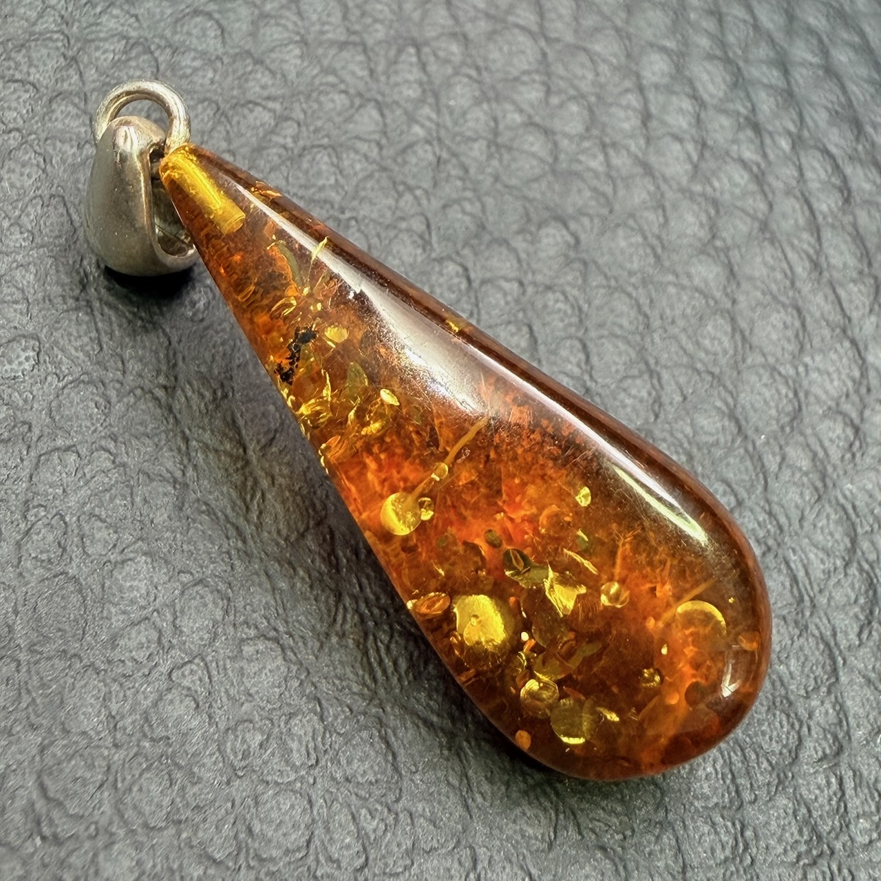 Cette résine fossile est utilisée pour la confection de bijoux comme ce superbe pendentif en ambre de la mer baltique.