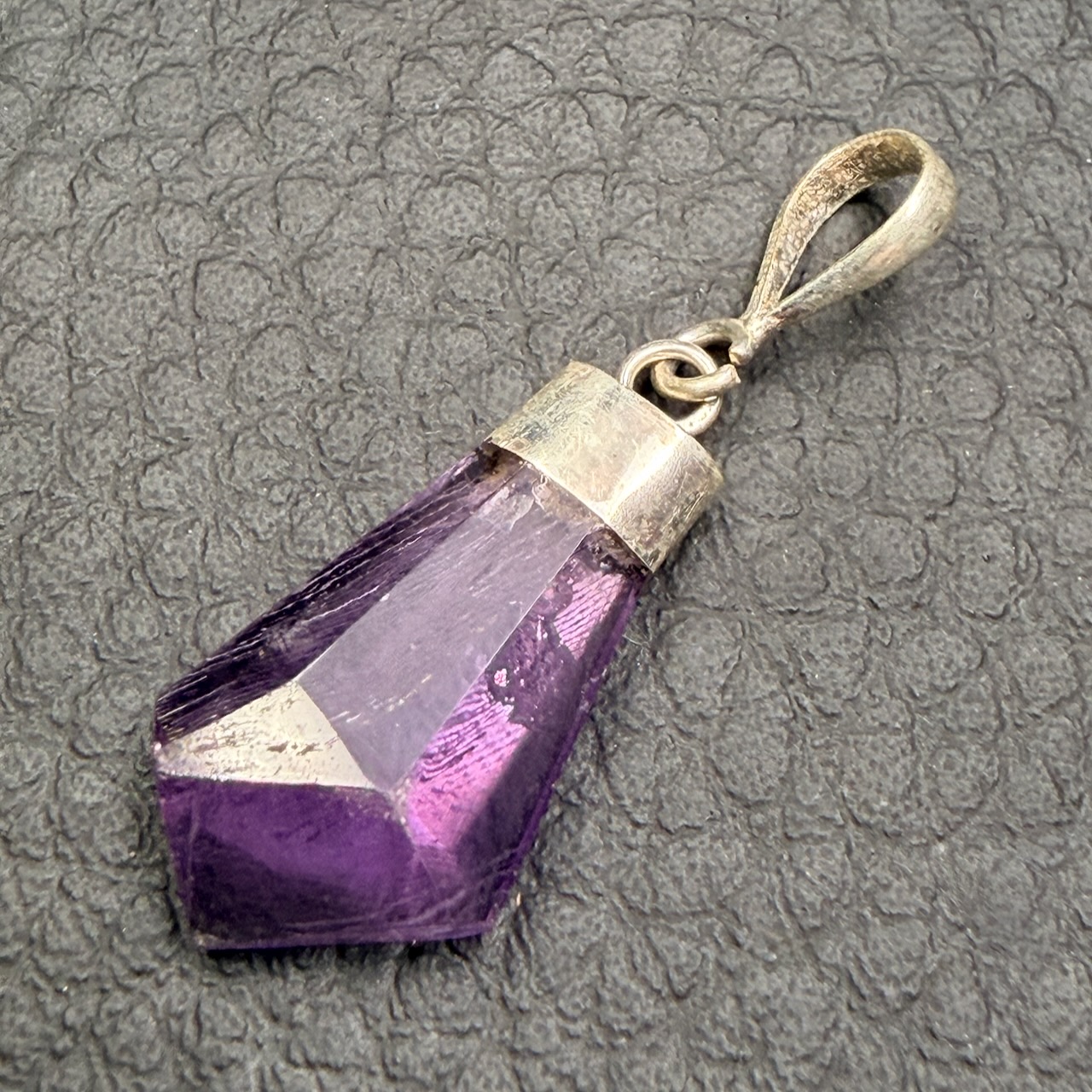Taille du pendentif en Améthyste du Pakistan hors bélière 1,8 cm sur 1 cm sur 0,5 cm.