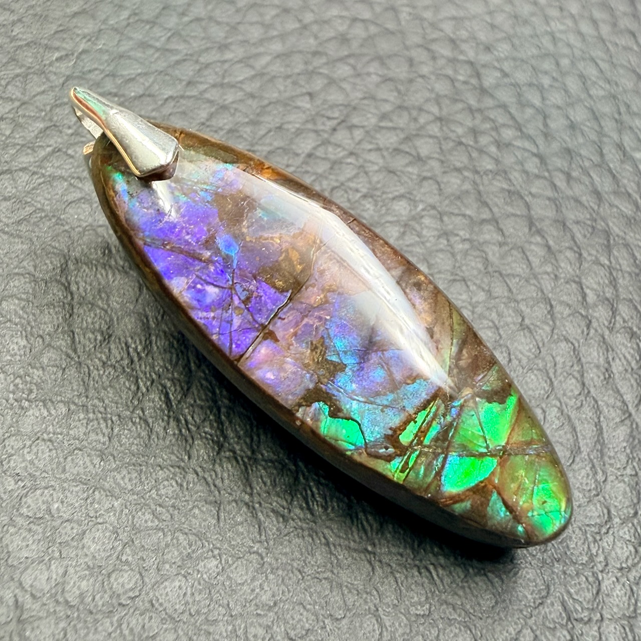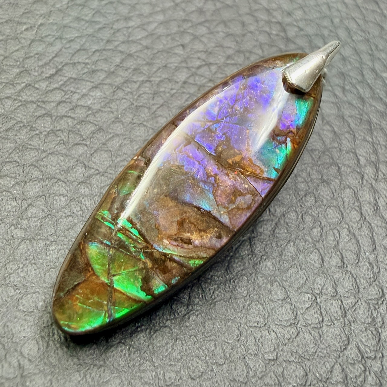 Poids du pendentif en ammolite 5,6 grammes soit 28 carats.