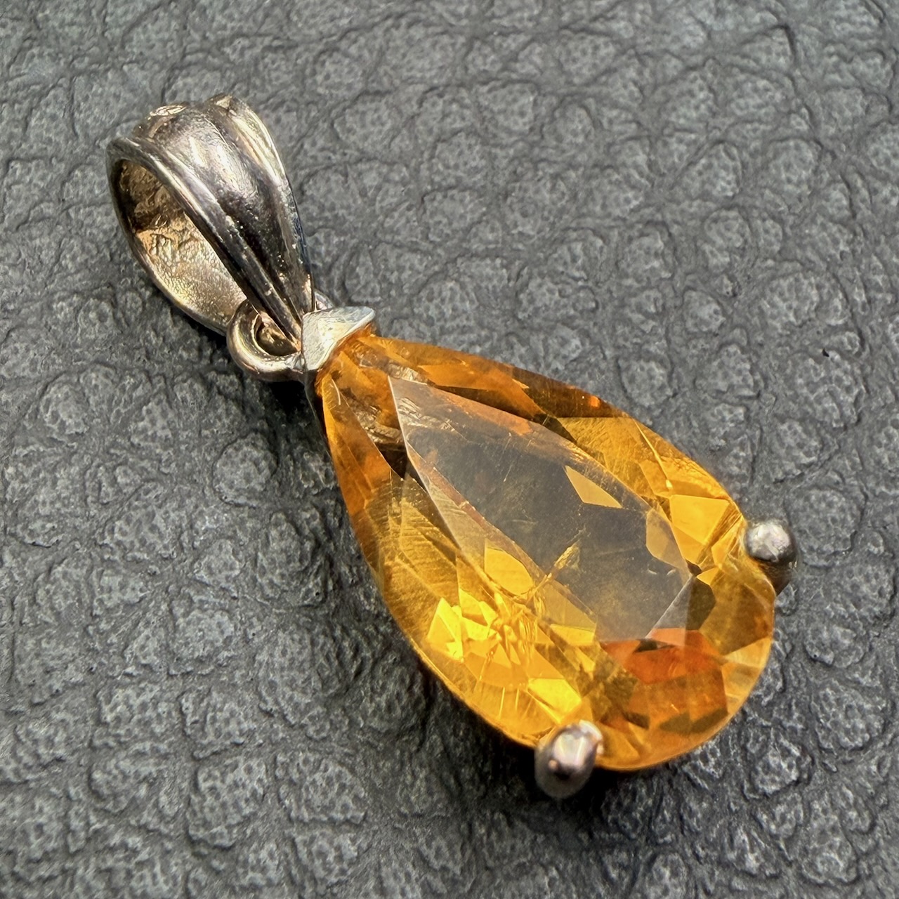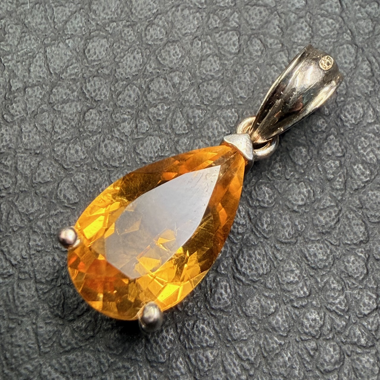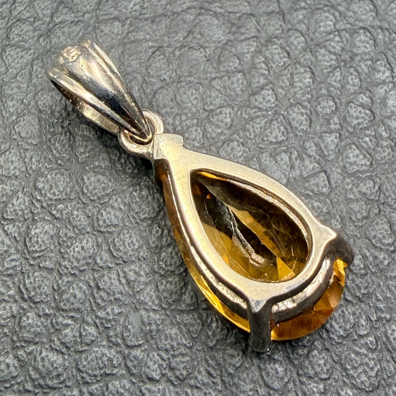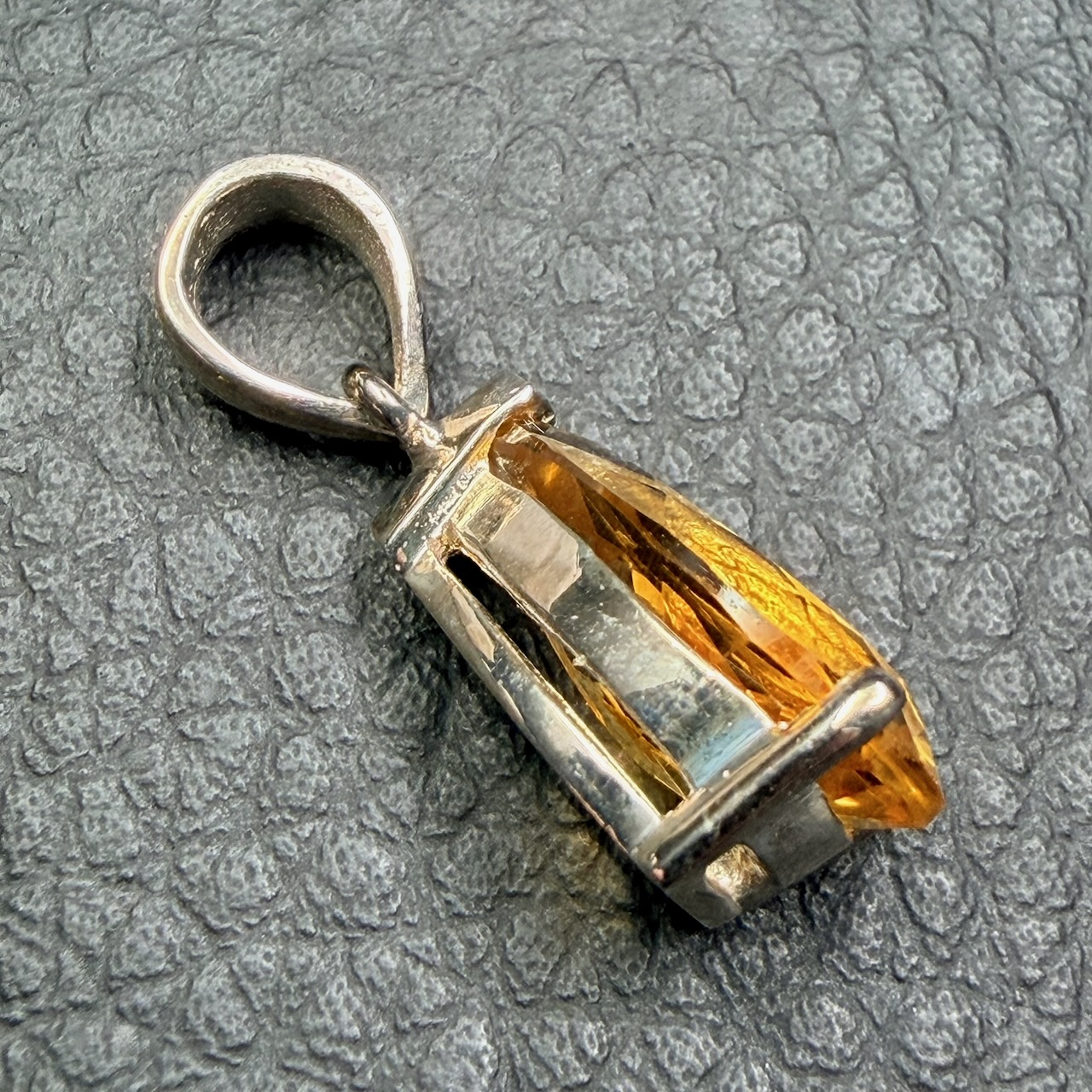 Taille du pendentif en citrine gemme 1,4 cm sur 0,8 cm sur 0,7 cm.