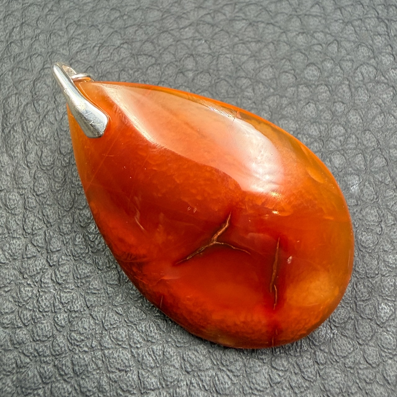 Taille de la pierre ornant le pendentif en cornaline hors bélière 3,6 cm sur 2,5 cm sur 0,7 cm.